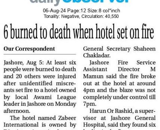 Daily Observer, 6 August 2024, 6 burned to death when hotel set on fire