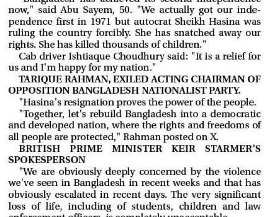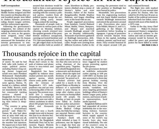 Business Standard, 6 August 2024, HASINA OUT: Jubilation in the air
