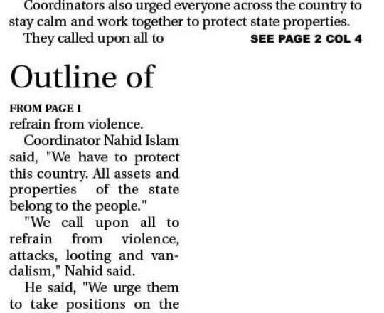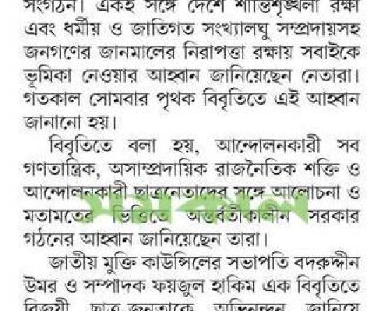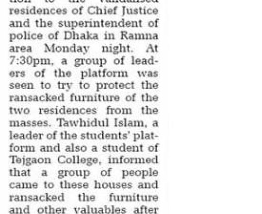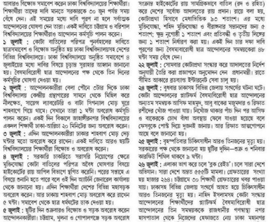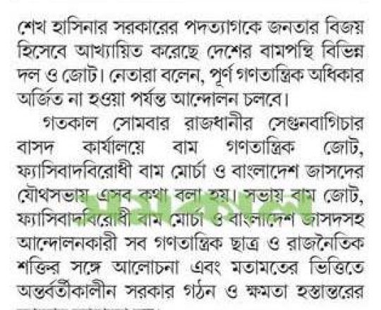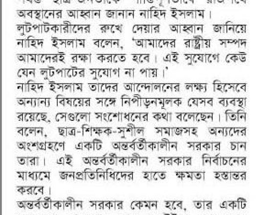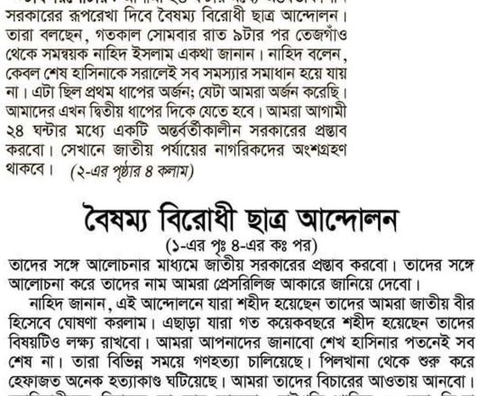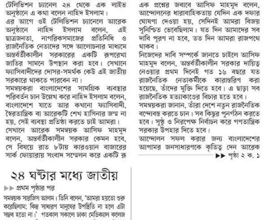 The Daily Star,6 Aug Protest organisers to place framework for nat'l govt tonight