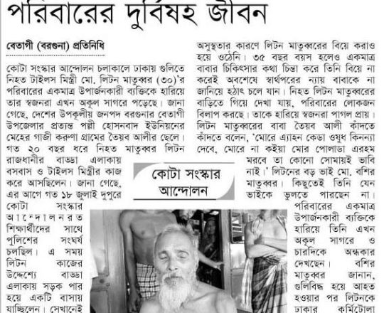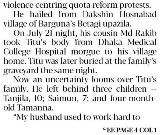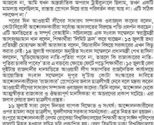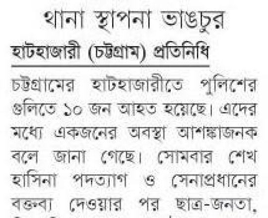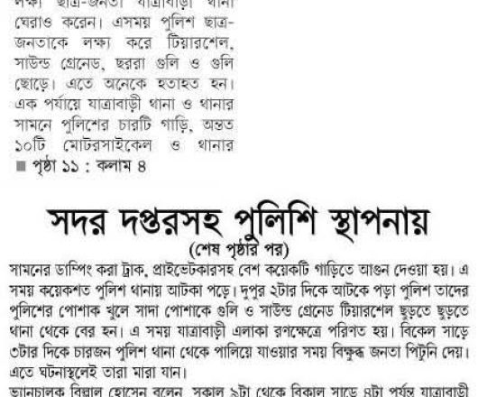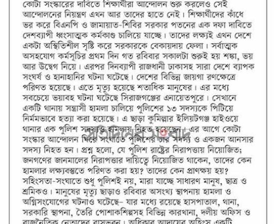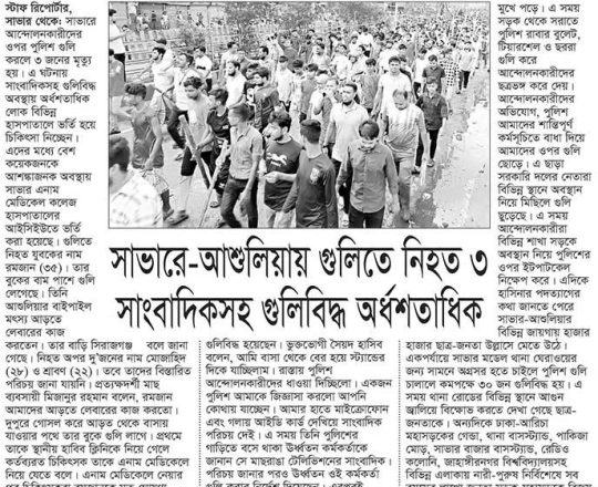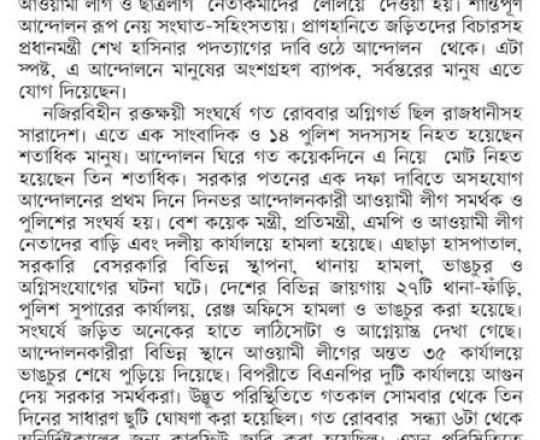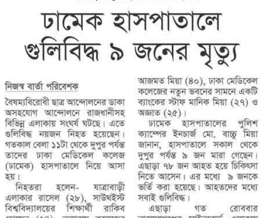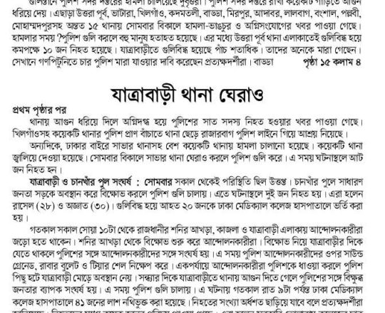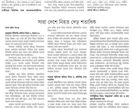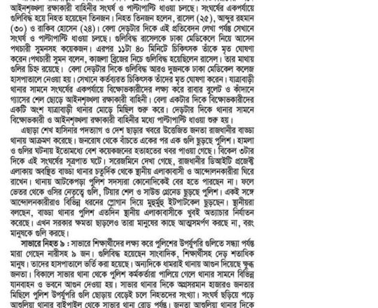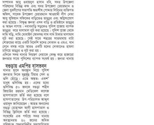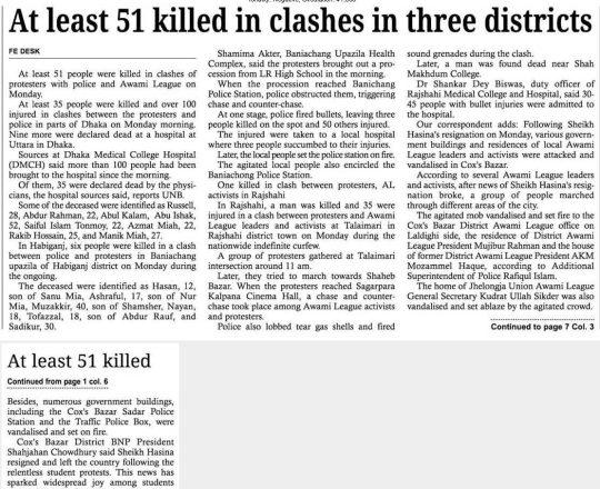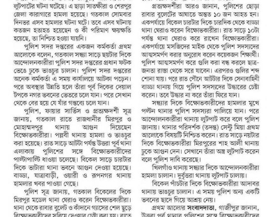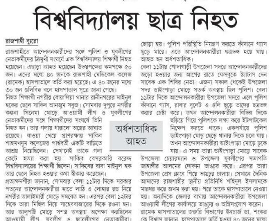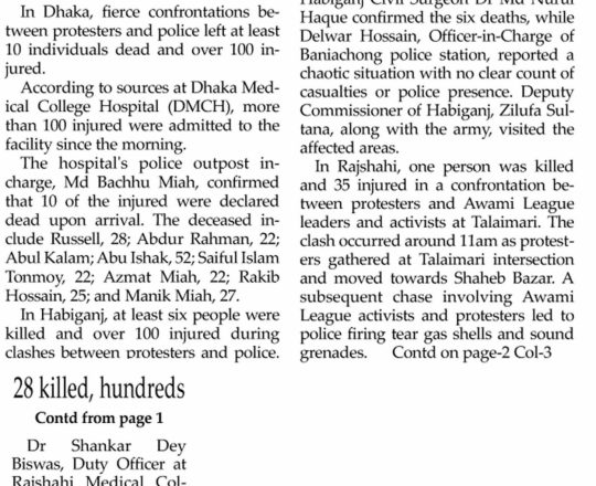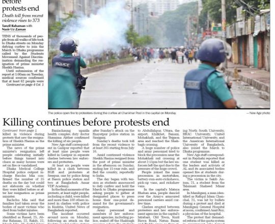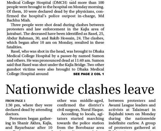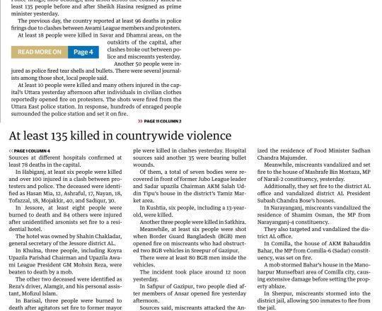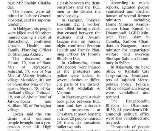 Daily Observer, 6 August 2024, Nationwide clashes leave 14 dead, over 200 injured, including in Dhaka