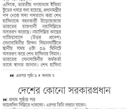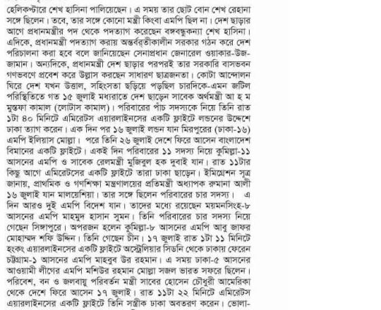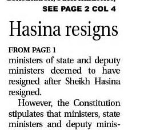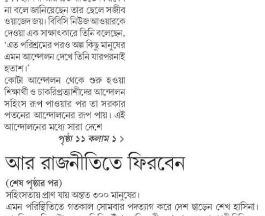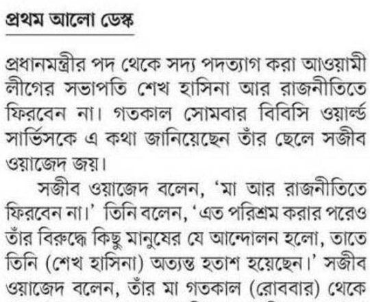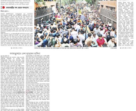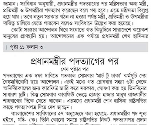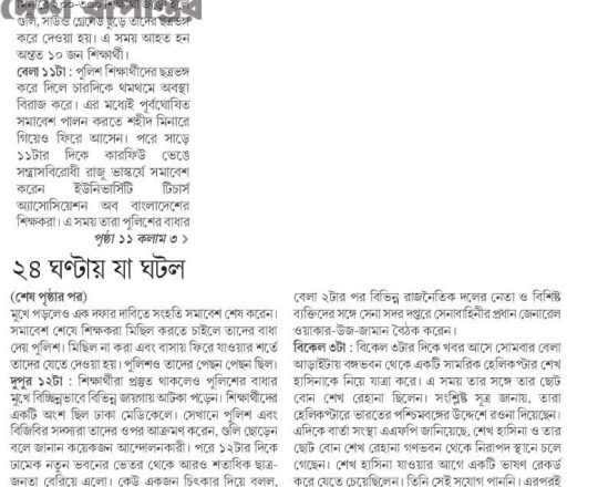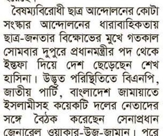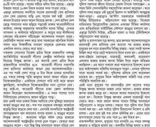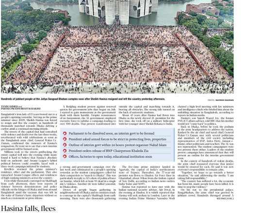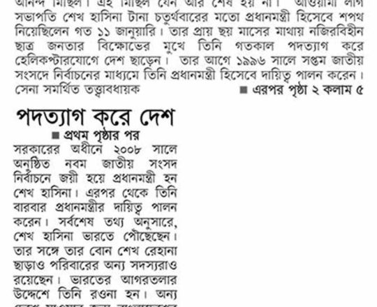 প্রথম আলো,৬ আগস্ট পদত্যাগ করে দেশ ছেড়েছেন শেখ হাসিনা