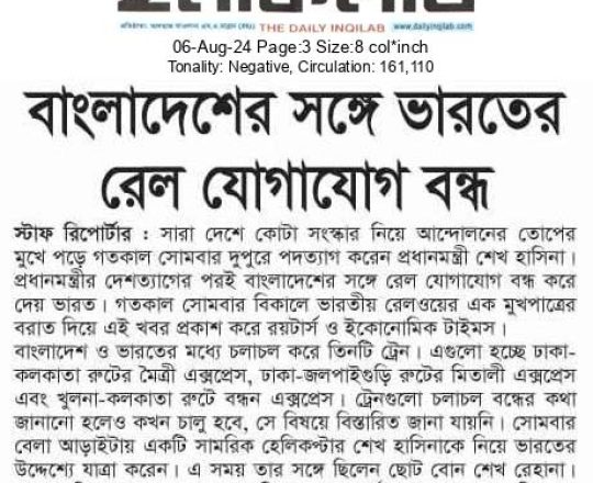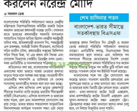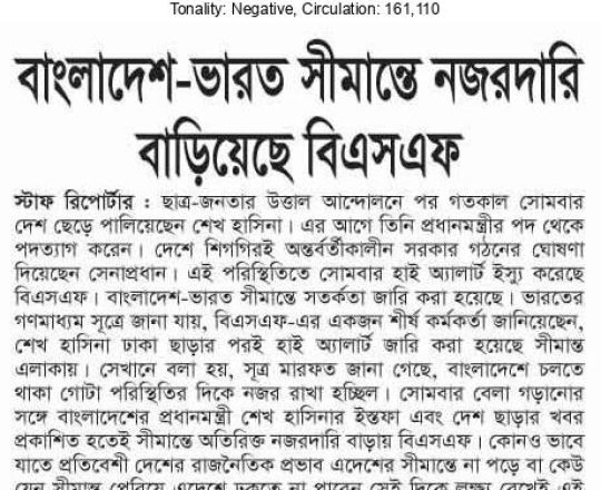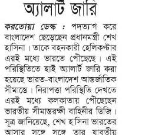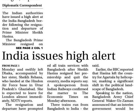 Daily Observer, 6 August 2024, India issues high alert at border after Hasina resigns, departs