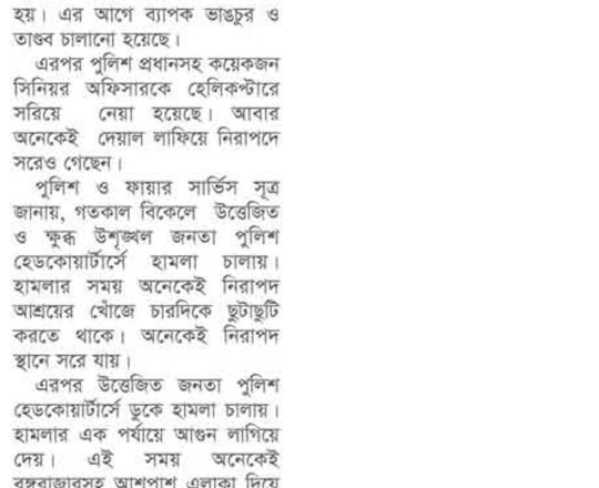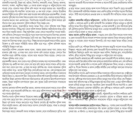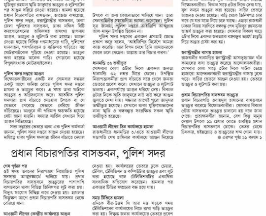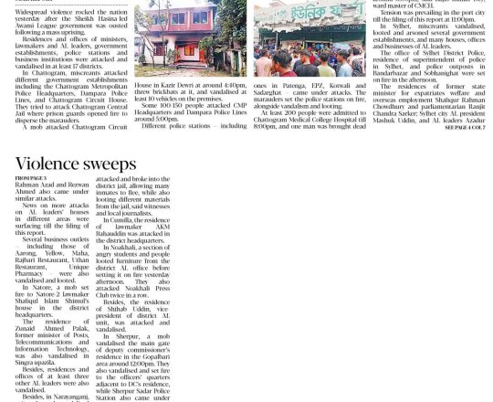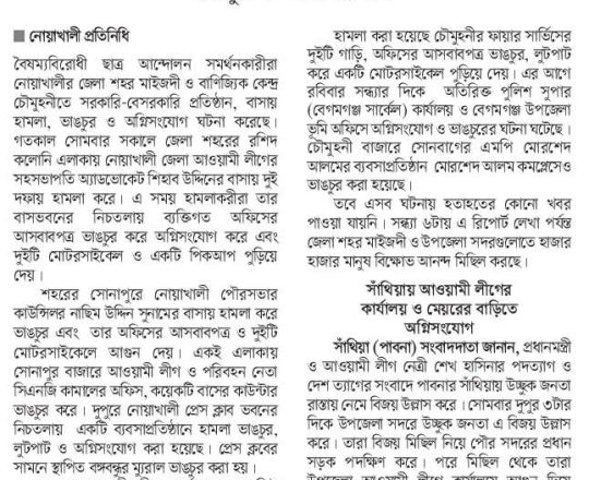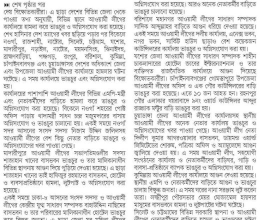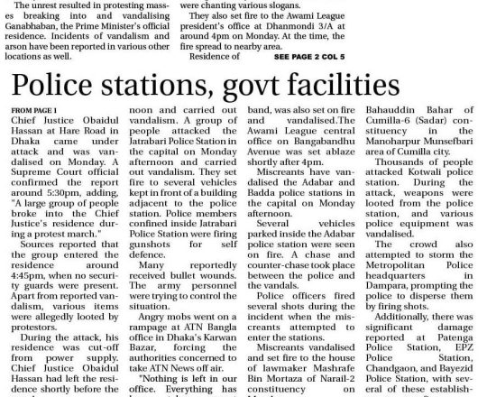 Daily Observer, 6 August 2024, Police stations, govt facilities, AL leaders houses come under attacks countrywide