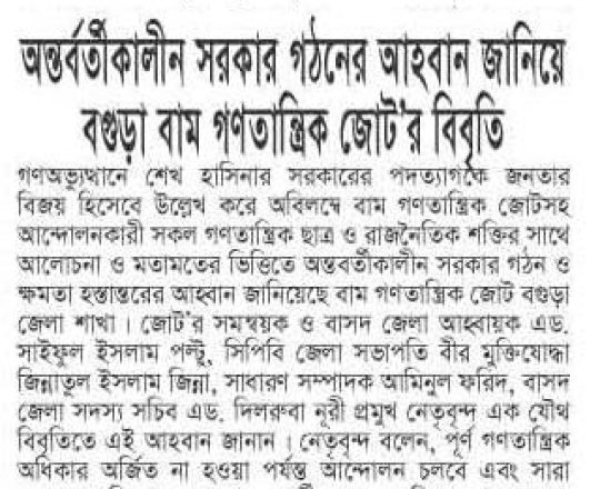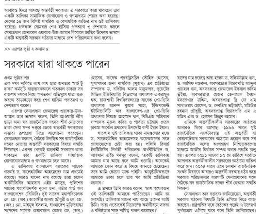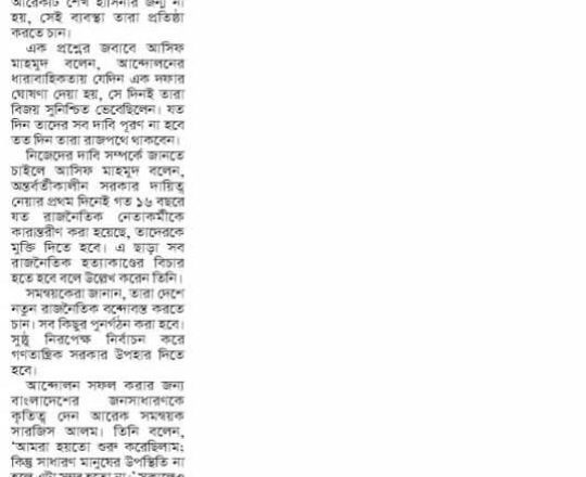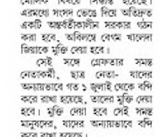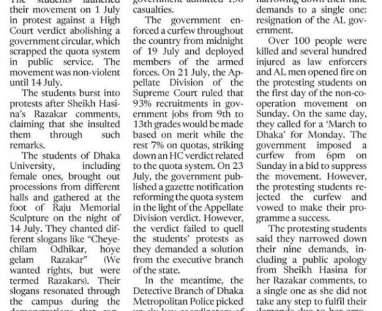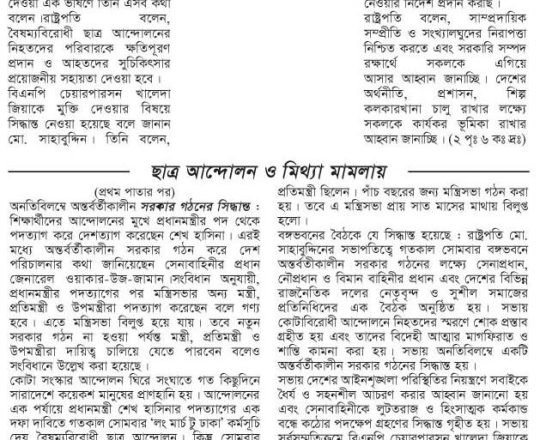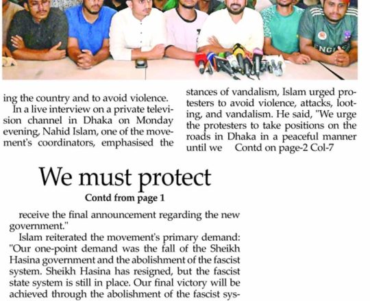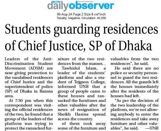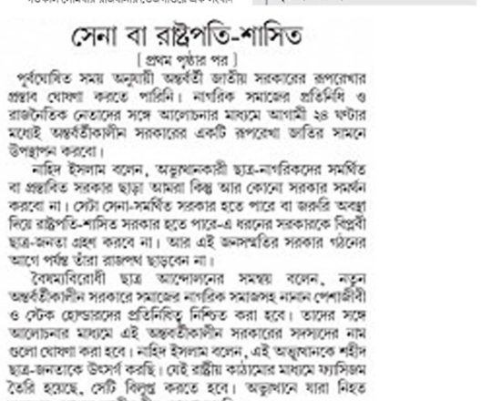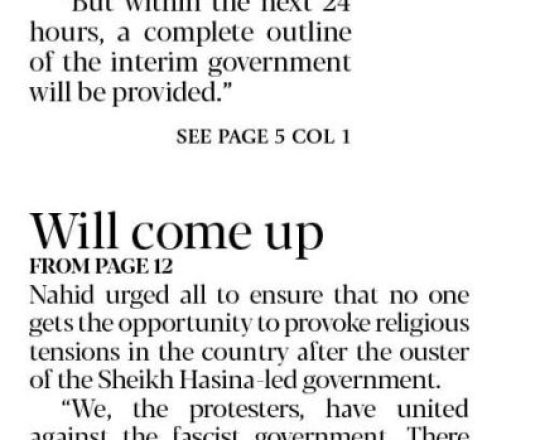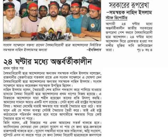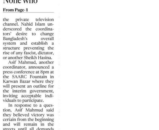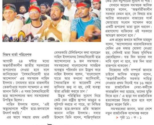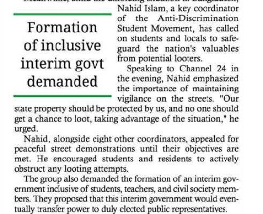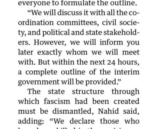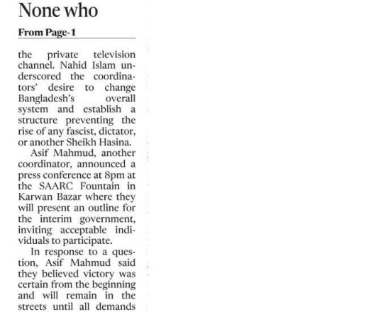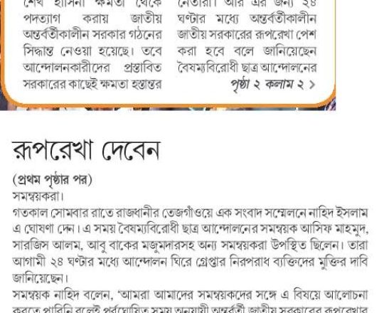 Daily Observer, 6 August 2024, Outline of interim govt within 24 hours: Coordinators