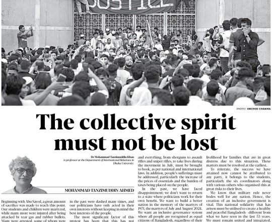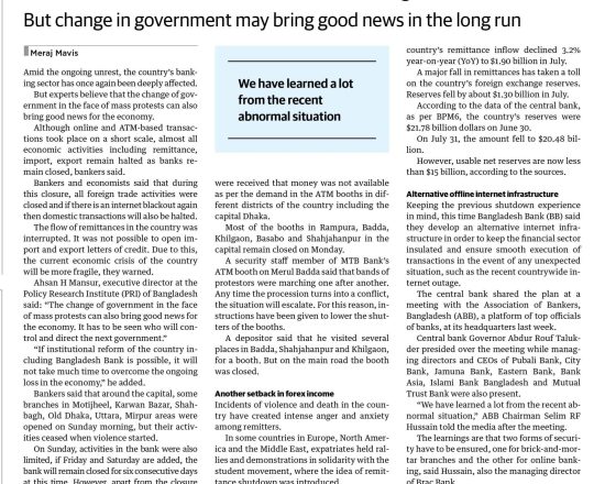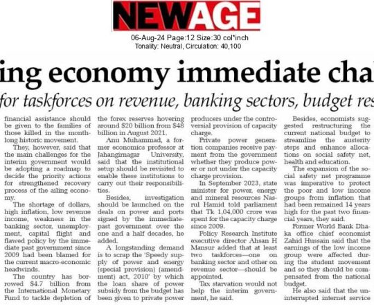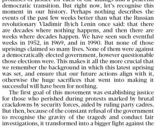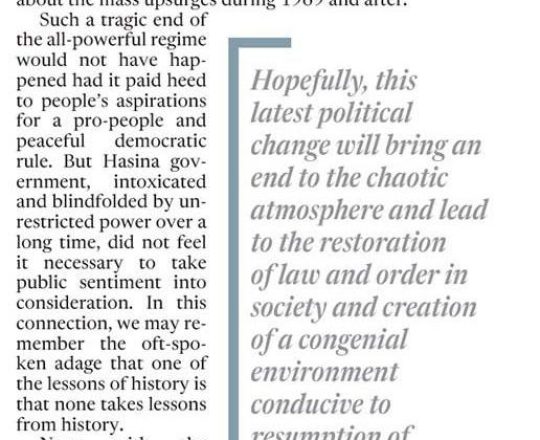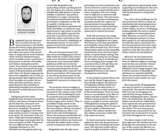 Business Standard, 6 August 2024, "Those in charge today must take actions to prevent anything that pushes the nation out of the frying pan and into the fire'