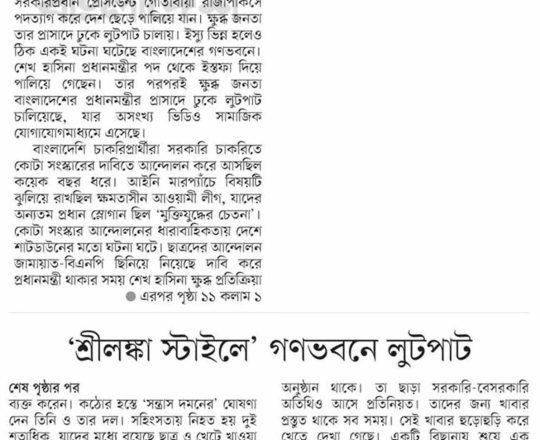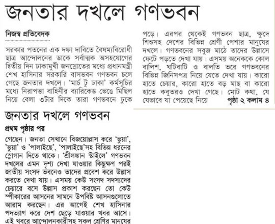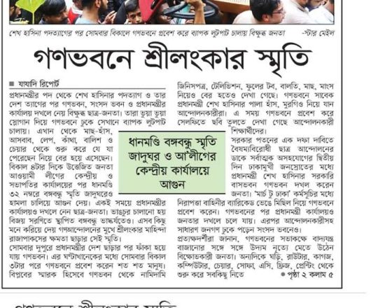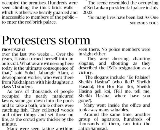 সময়ের আলো, ৬ আগস্ট ২০২৪, গতকাপ্পলর গণভবন