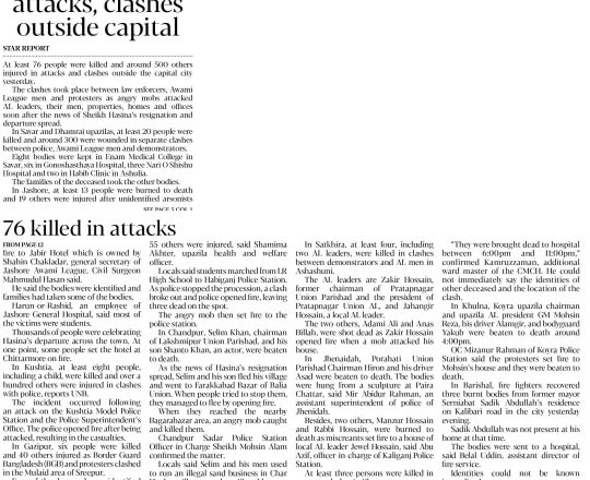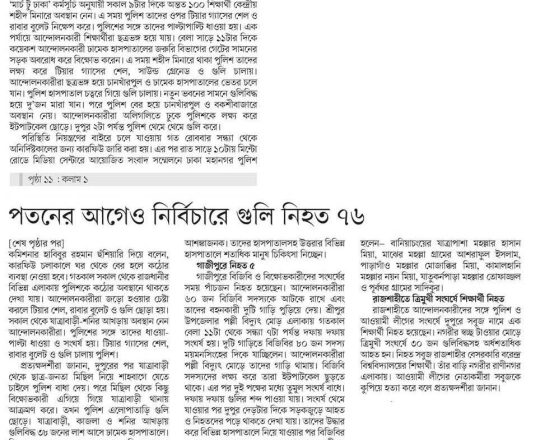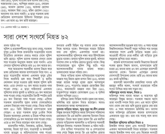 সময়ের আলো, ৬ আগস্ট ২০২৪, সংঘর্ষ-গুলিতে আরও ৭৫ প্রাণহানি