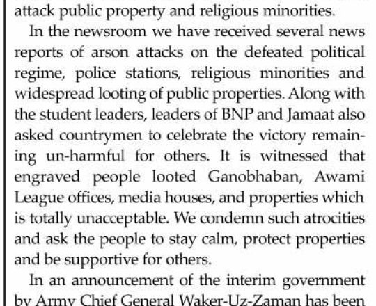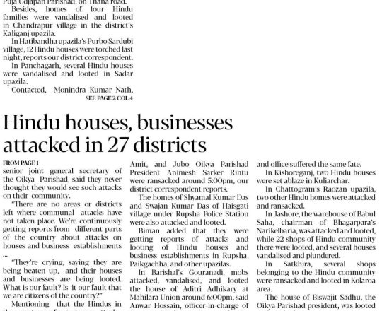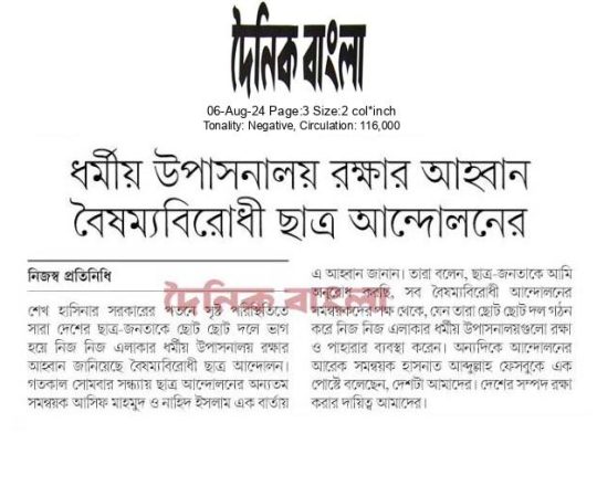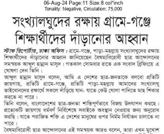Daily Observer, 6 August 2024, Protecting minorities: Who to contact in the Army, all over Bangladesh