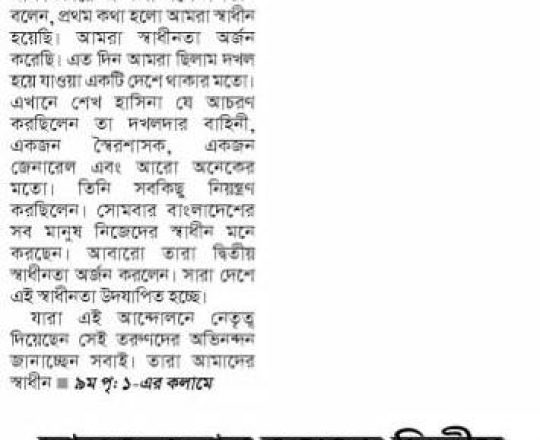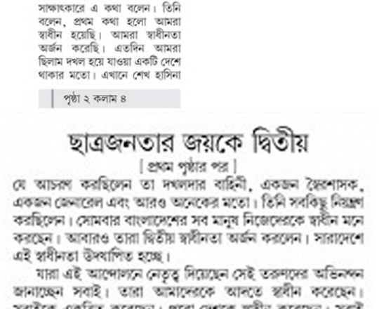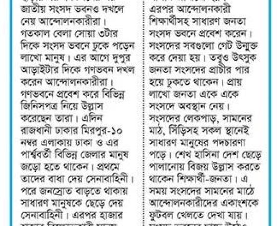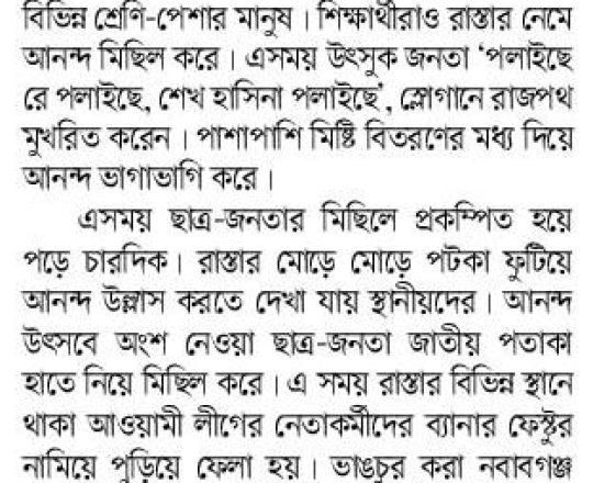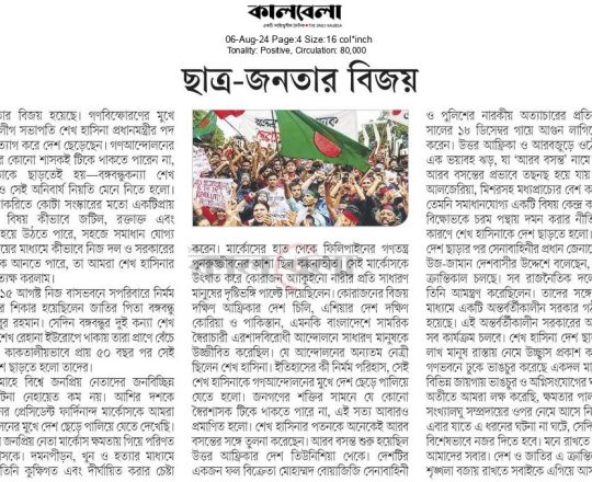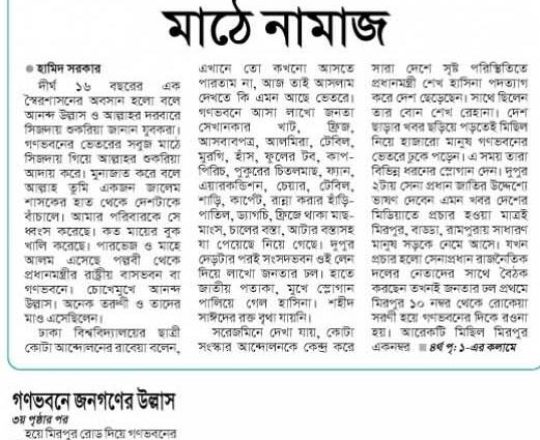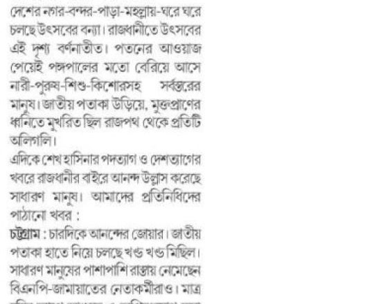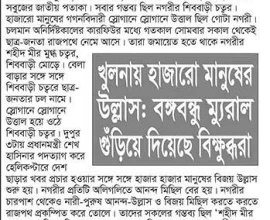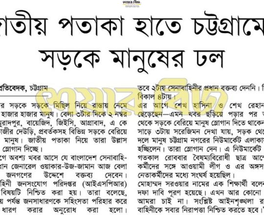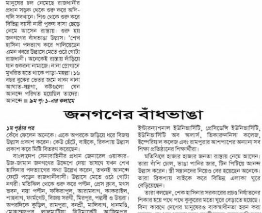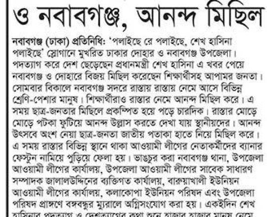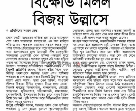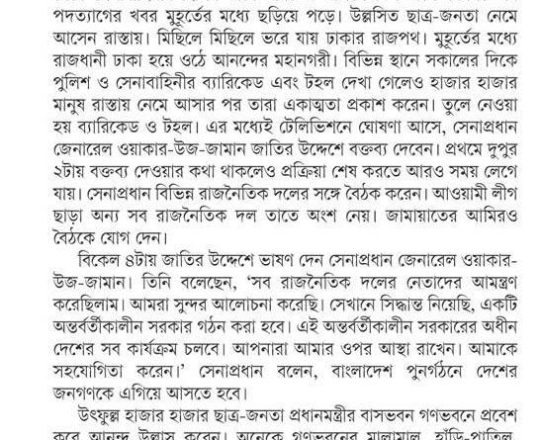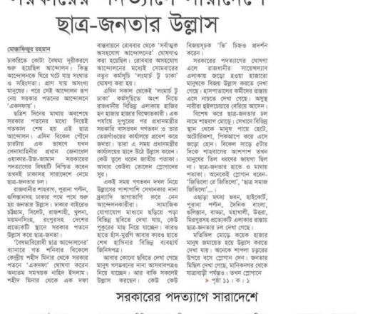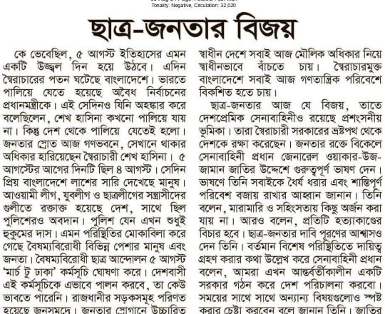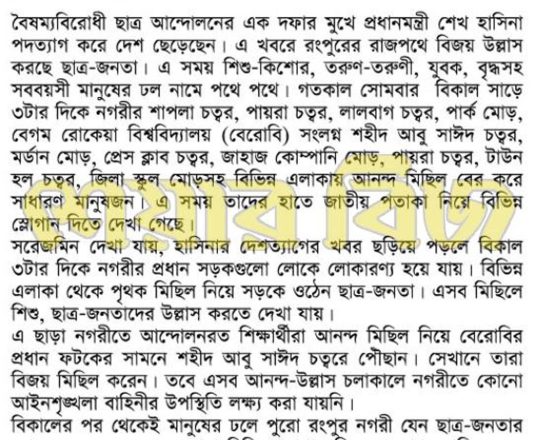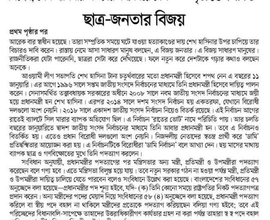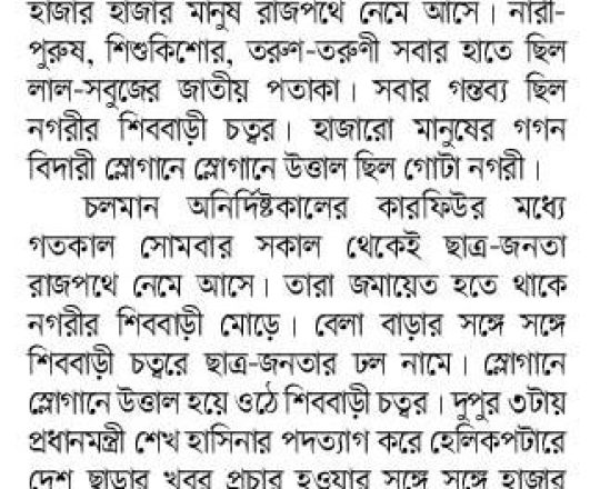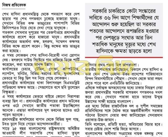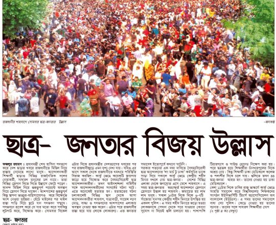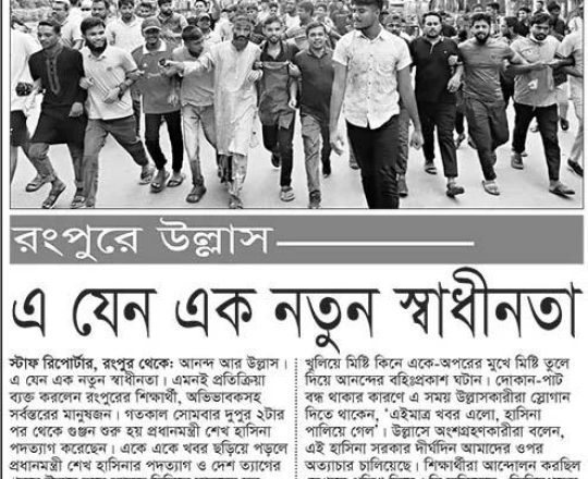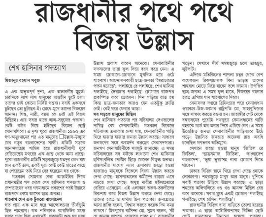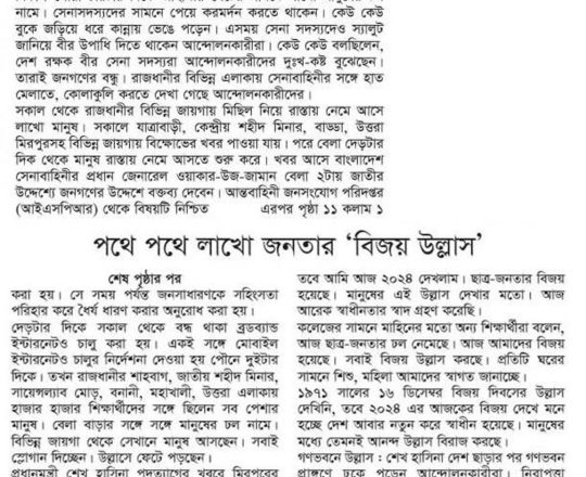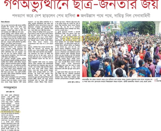 সময়ের আলো, ৬ আগস্ট ২০২৪, ছাত্র-জনতার অভ্যুত্থান
