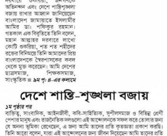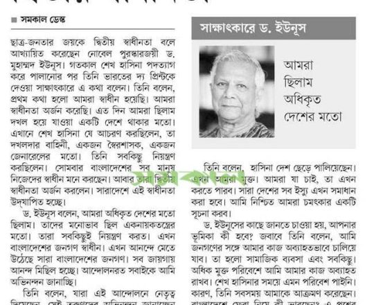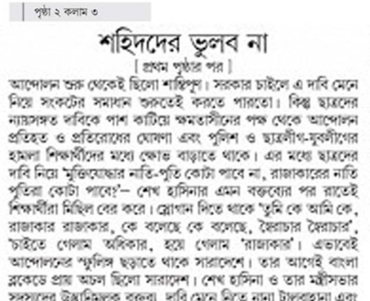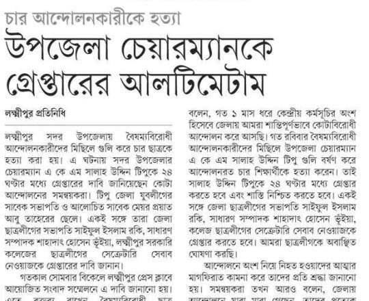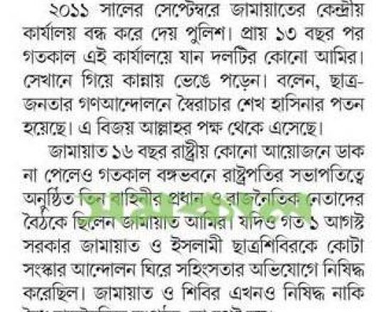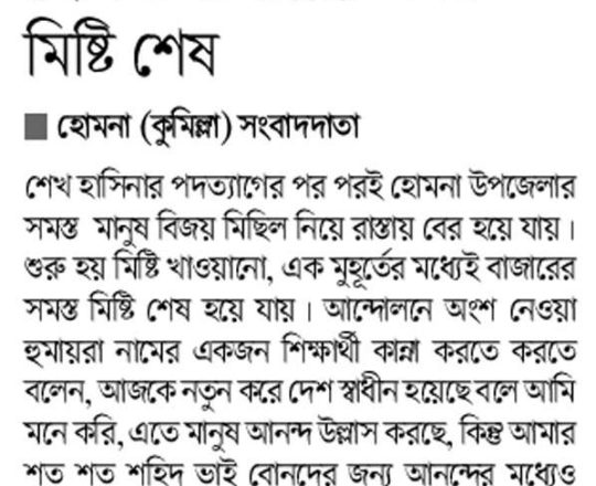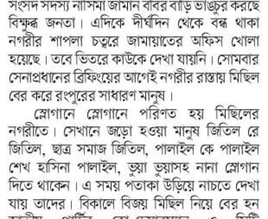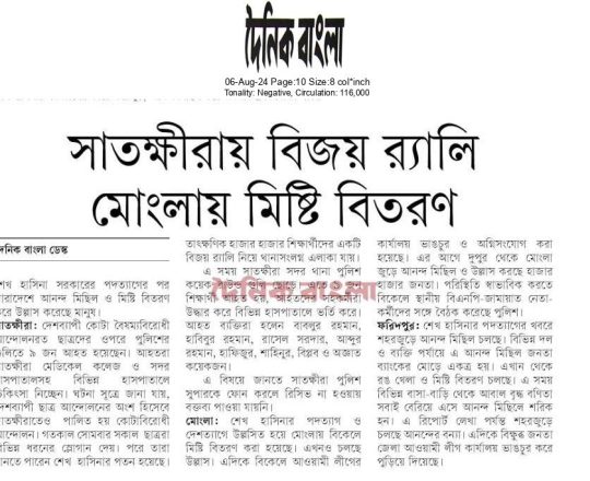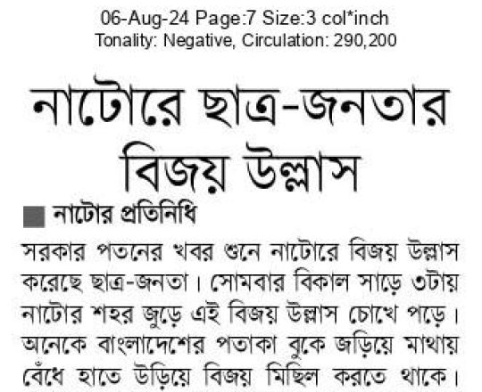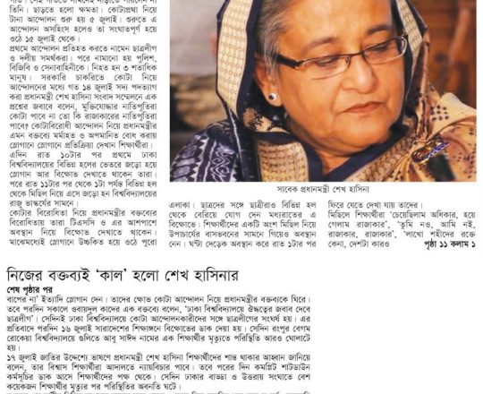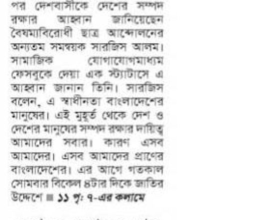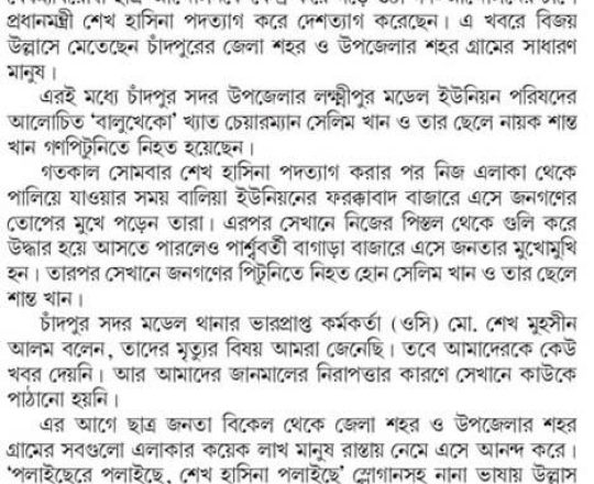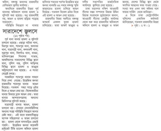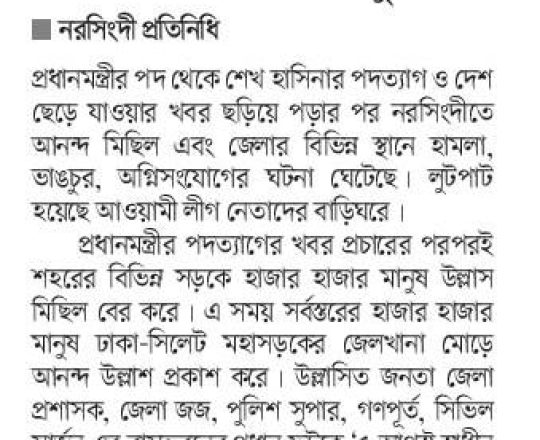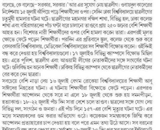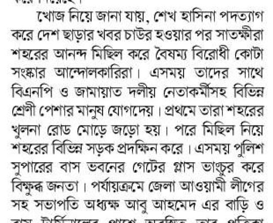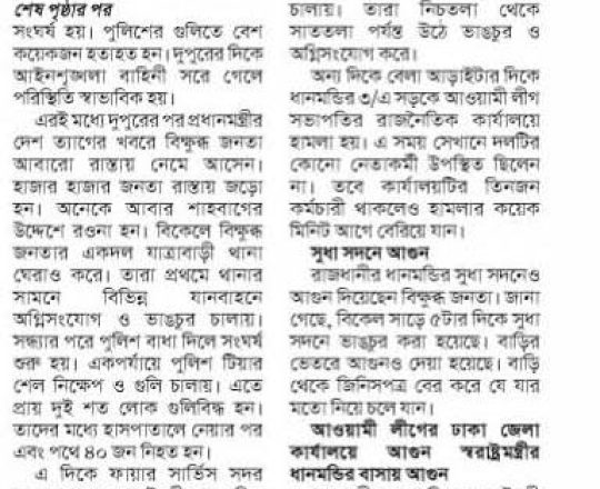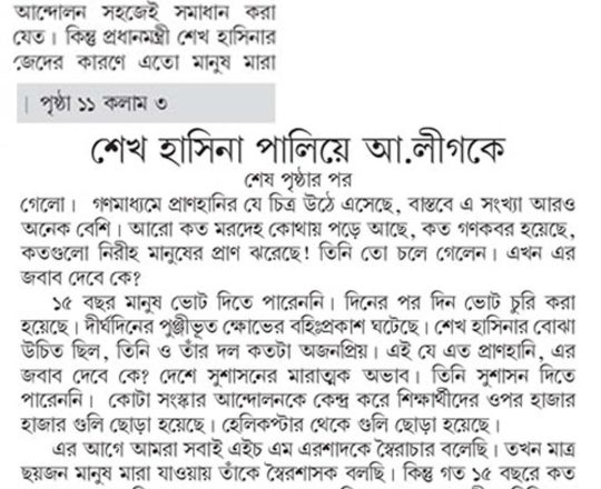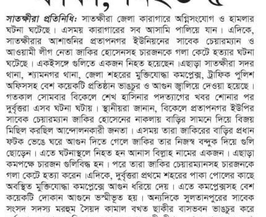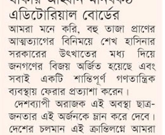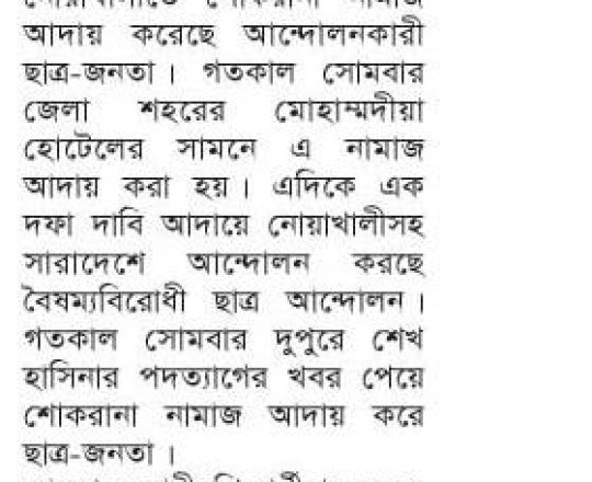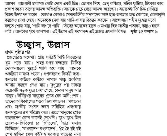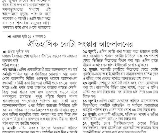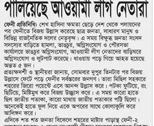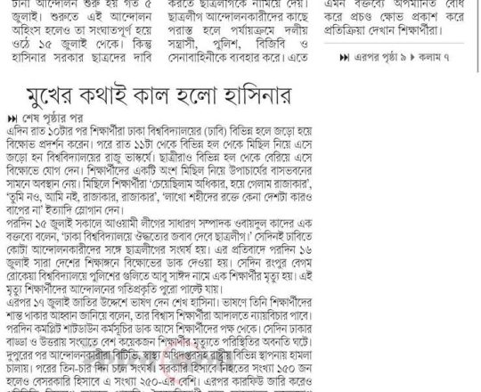 সময়ের আলো, ৬ আগস্ট ২০২৪, ছাত্র-জনতার অভ্যুত্থান