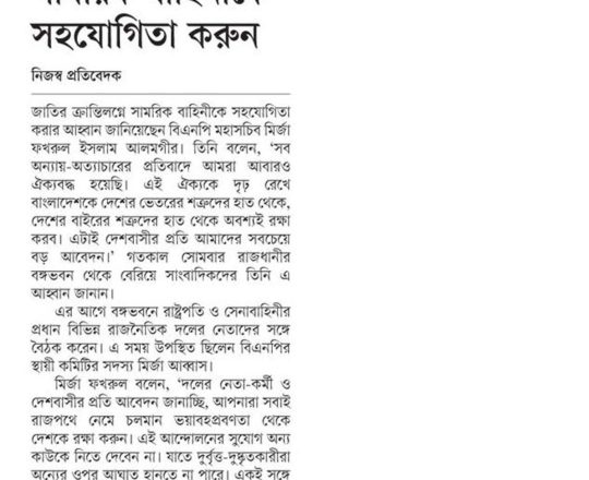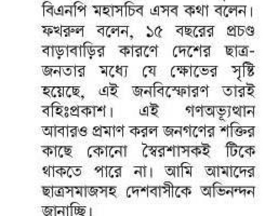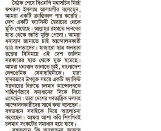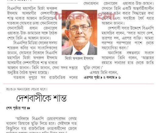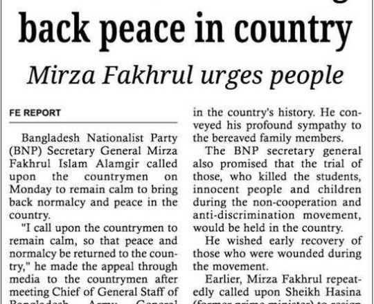 শেয়ার বিজ, ৬ আগস্ট ২০২৪, দেশবাসীকে শান্ত থাকার আহ্বান মির্জা ফখরুলের