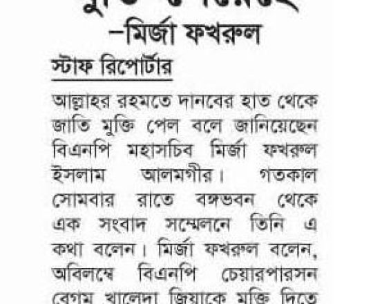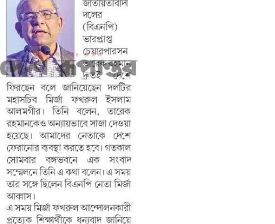 সময়ের আলো, ৬ আগস্ট ২০২৪, খালেদা জিয়াকে কালক্ষেপণ না করেই মুক্ত করা হবে- ফখরুল
