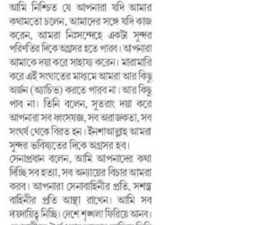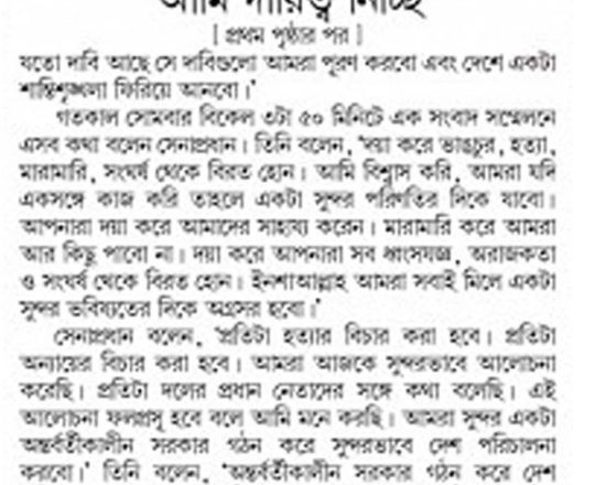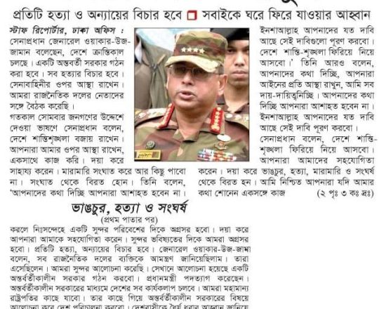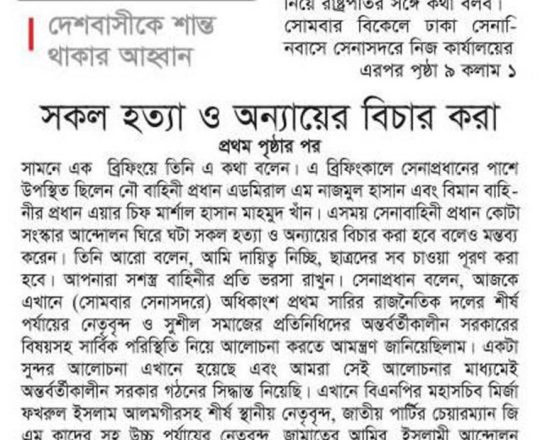 সময়ের আলো, ৬ আগস্ট ২০২৪, জাতির উদ্দেশে দেওয়া ভাষণে সেনাপ্রধান সকল হত্যা ও অন্যায়ের বিচার করা হবে