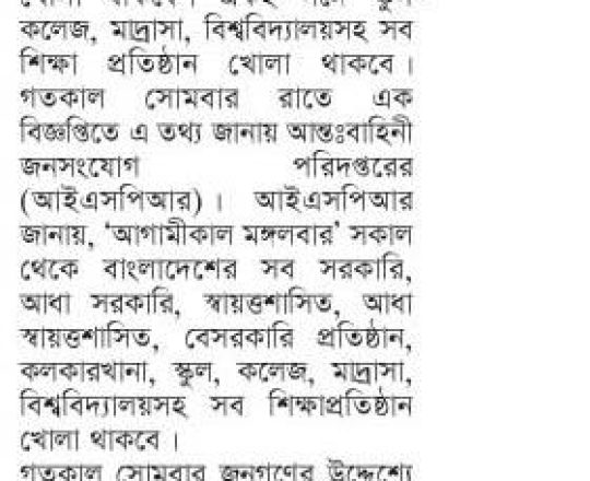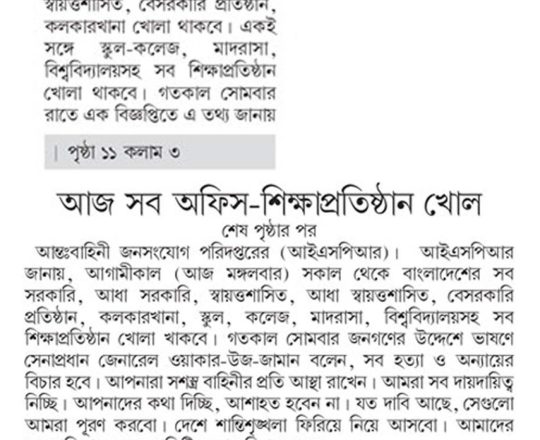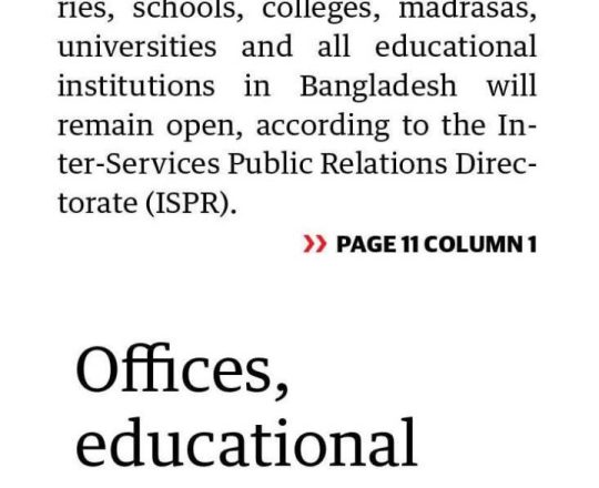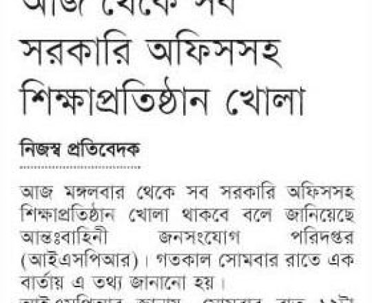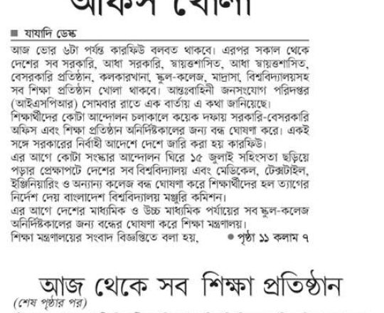 শেয়ার বিজ, ৬ আগস্ট ২০২৪, আজ থেকে অফিস শিক্ষাপ্রতিষ্ঠান খোলা