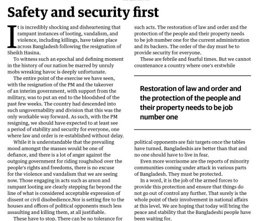 Business Standard, 6 August 2024, 'We must immediately take strict measures to suppress anarchy'