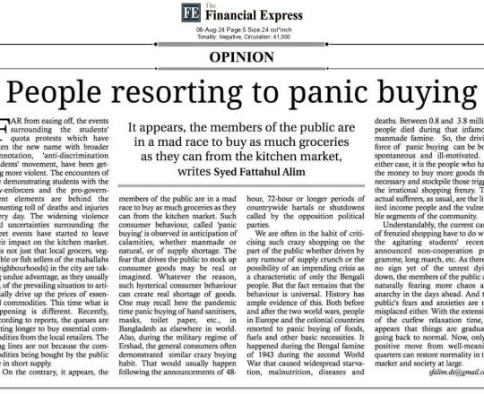 Business Standard, 6 August 2024, Mohammad A. Arafat