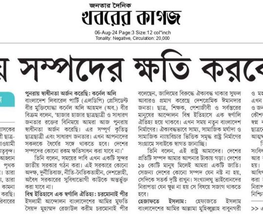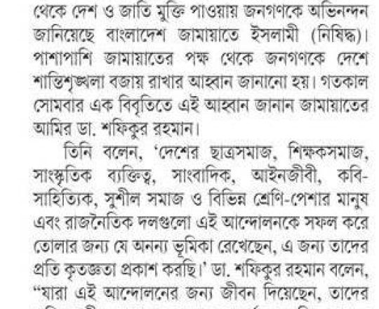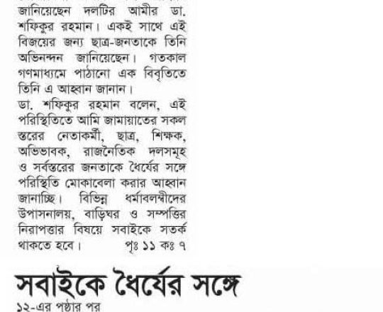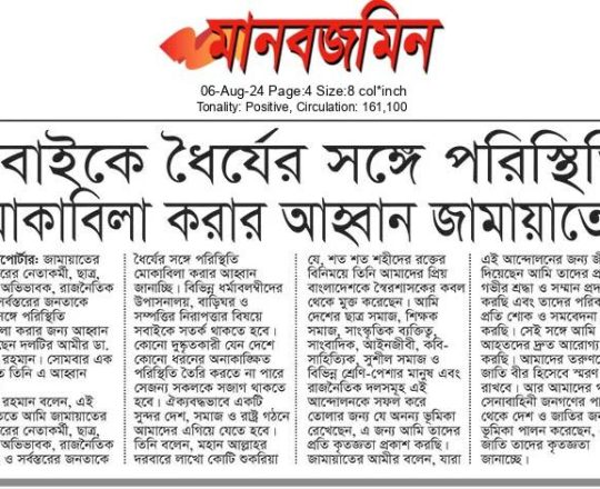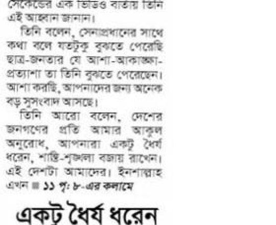 সময়ের আলো, ৬ আগস্ট ২০২৪, সবাইকে সহিষ্ণু ও ধৈর্যশীল হতে হবে