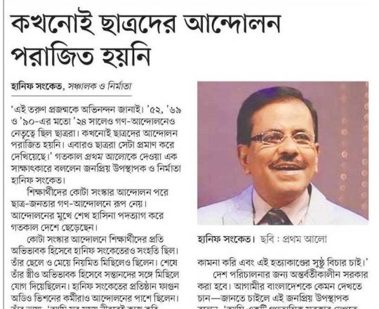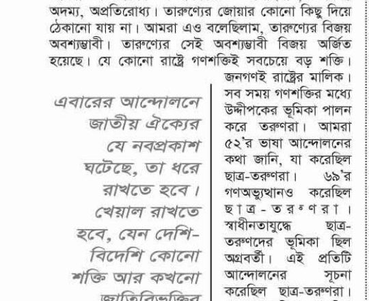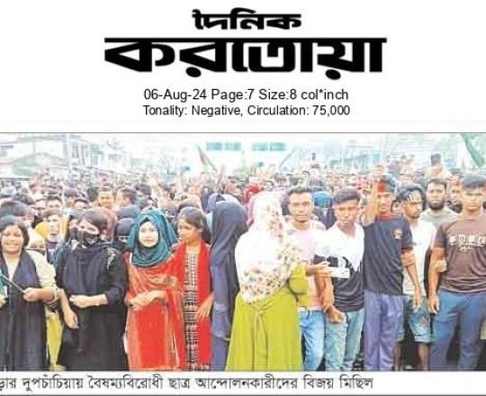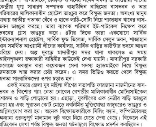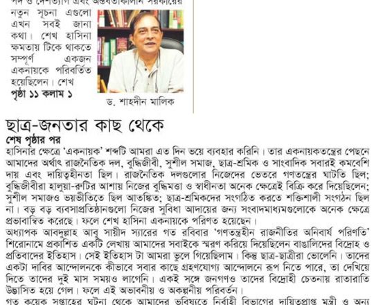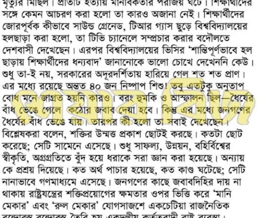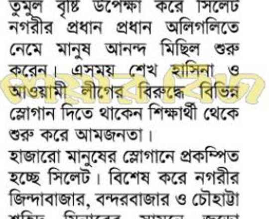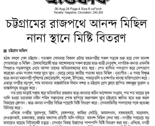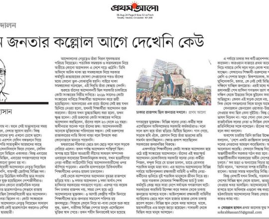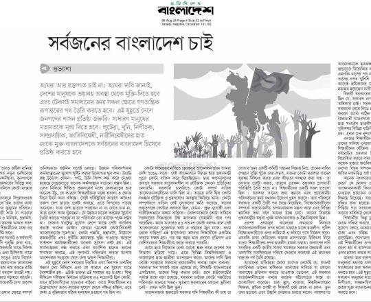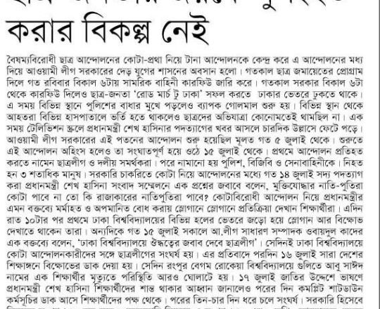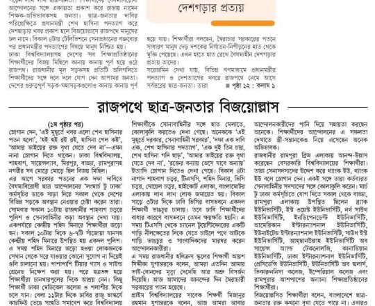 সময়ের আলো, ৬ আগস্ট ২০২৪, ছাত্র জনতার অভ্যত্থান