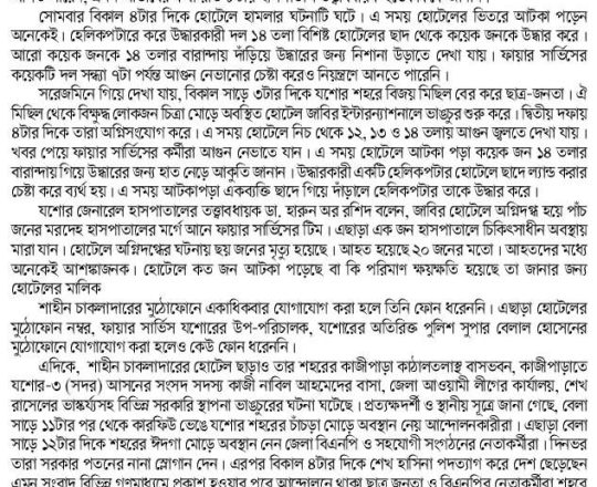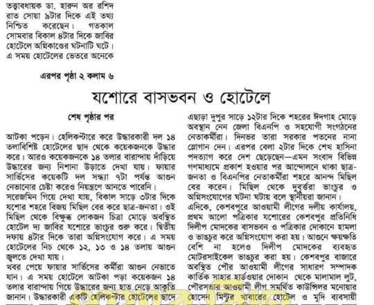 শেয়ার বিজ, ৬ আগস্ট ২০২৪, যশোরে বাসভবন ও হোটেলে অগ্নিসংযোগ, নিহত ১৩, দগ্ধ ২০