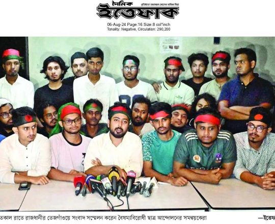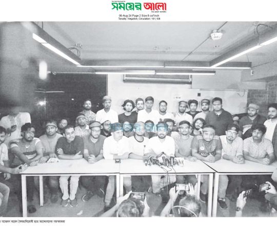 সময়ের আলো, ৬ আগস্ট ২০২৪, বিজয়ের পর সংবাদ সম্মেলন করেন বৈষম্যবিরোধী ছাত্র আন্দোলনের সমন্বয়করা