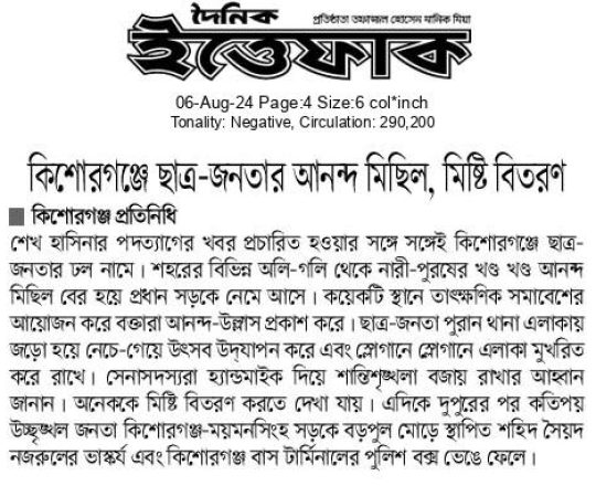Business Post, 6 August 2024, Jubilant Chattogram celebrates victory
