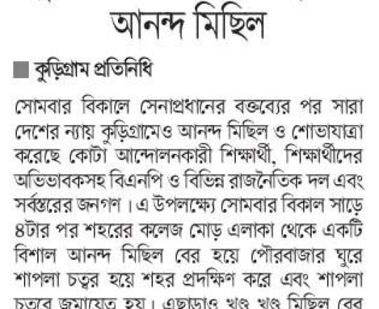শেয়ার বিজ, ৬ আগস্ট ২০২৪, রংপুরে ছাত্র-জনতার বিজয় উল্লাস