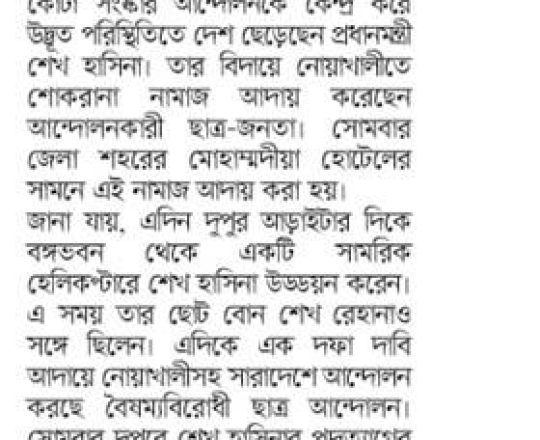 সময়ের আলো, ৬ আগস্ট ২০২৪, ছাত্র-জনতার অভ্যুত্থান শেখ হাসিনার দেশত্যাগ