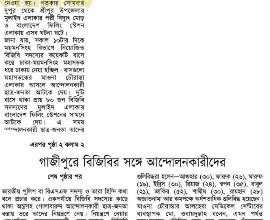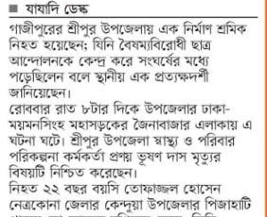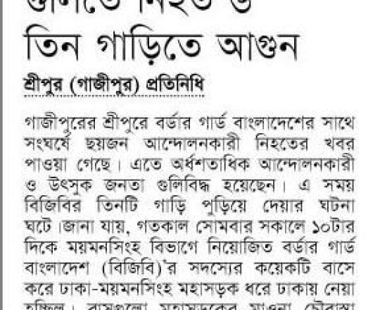 শেয়ার বিজ, ৬ আগস্ট ২০২৪, গাজীপুরে বিজিবির সঙ্গে আন্দোলনকারীদের সংঘর্ষে নিহত ৬
