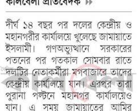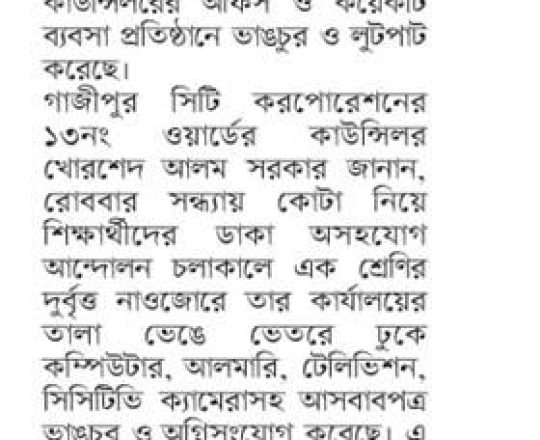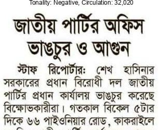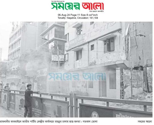 সময়ের আলো, ৬ আগস্ট ২০২৪, রাজধানীর কাকরাইলে জাতীয় পার্টির কেন্দ্রীয় কার্যালয়ে ভাঙচুর চালায় ছাত্র-জনতা