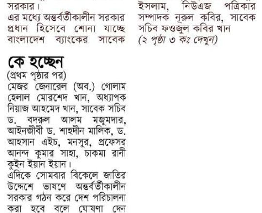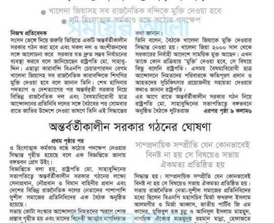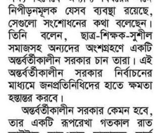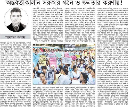 সময়ের আলো, ৬ আগস্ট ২০২৪, অন্তর্বর্তীকালীন সরকার গঠনের ঘোষণা