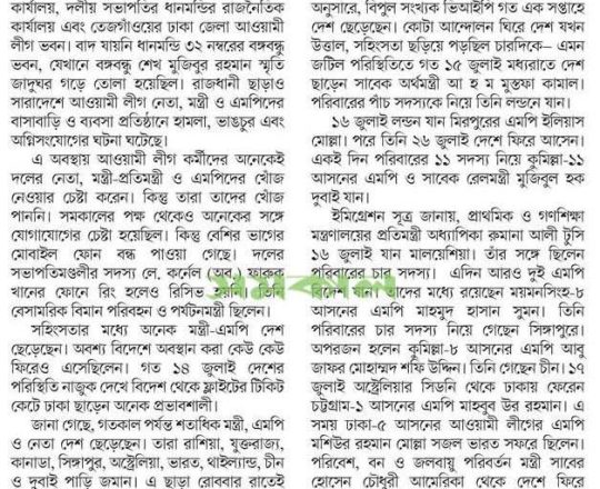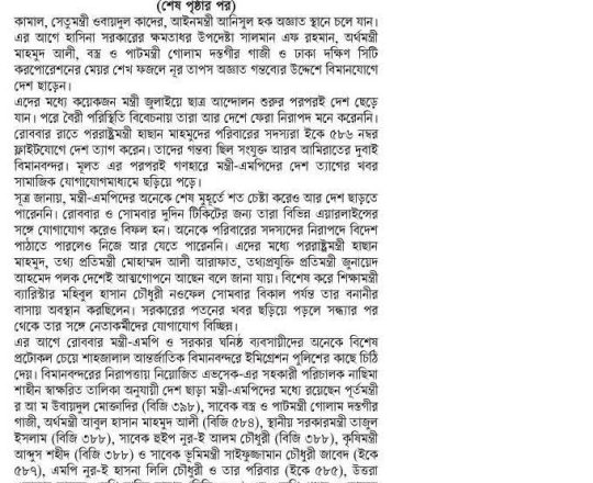 সময়ের আলো, ৬ আগস্ট ২০২৪, এমপি-মন্ত্রীরা কে কোথায়?
