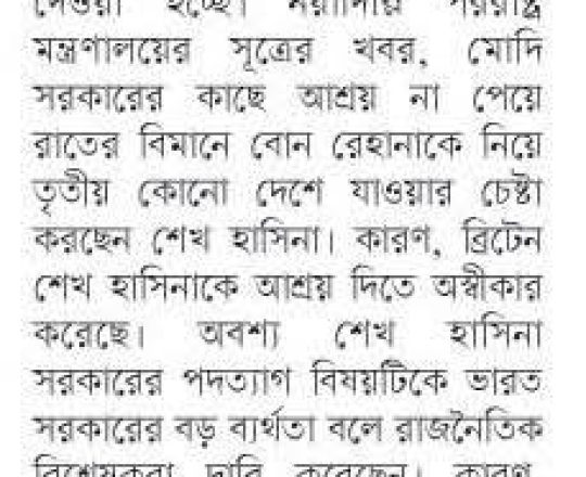 সময়ের আলো, ৬ আগস্ট ২০২৪, যেভাবে দিল্লিতে হাসিনা ভারতে অবস্থান করছেন, যেতে পারেন লন্ডন