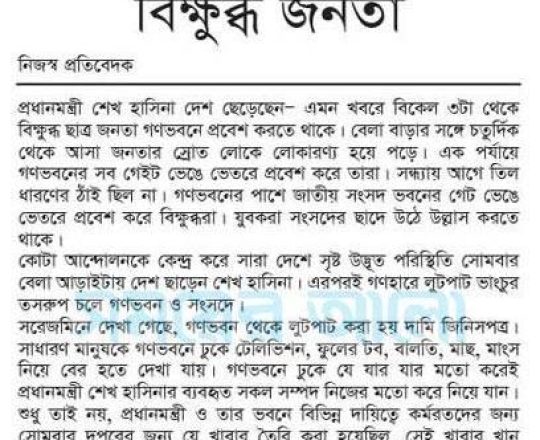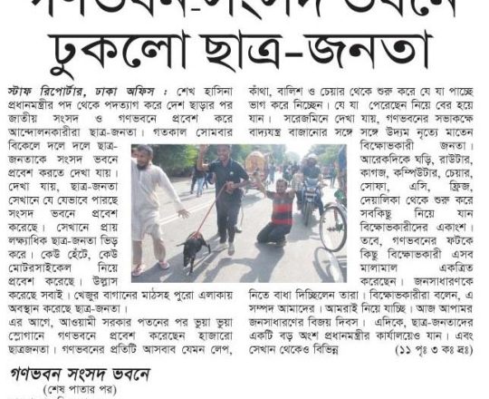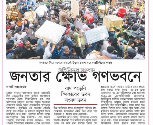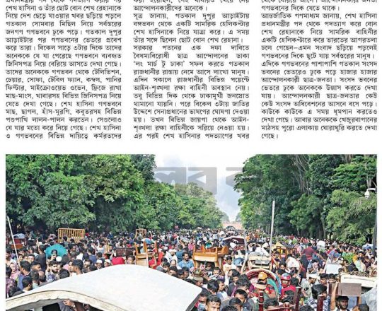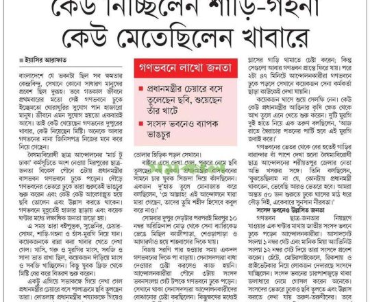 সময়ের আলো, ৬ আগস্ট ২০২৪, গণভবন ও সংসদ তছনছ ইচ্ছেমতো মালামাল আসবাবপত্র নিয়েছে বিক্ষুব্ধ জনতা