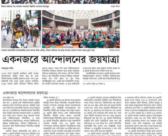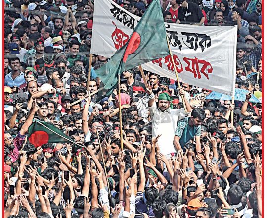 সময়ের আলো, ৬ আগস্ট ২০২৪, টিএসটি উপচে পড়ে ছাত্র-জনতার ভিড়ে