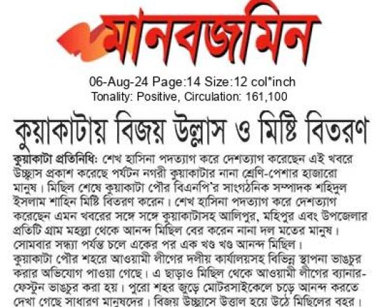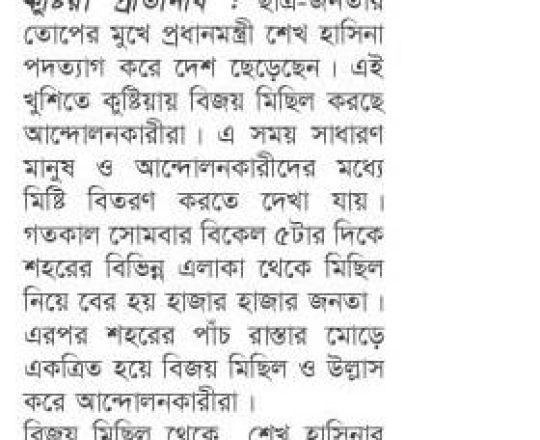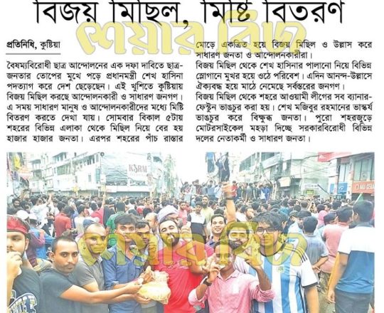 শেয়ার বিজ, ৬ আগস্ট ২০২৪, হাসিনার পদত্যাগে কুষ্টিয়ায় বিজয় মিছিল, মিষ্টি বিতরণ