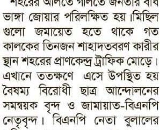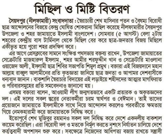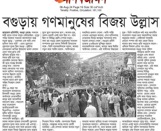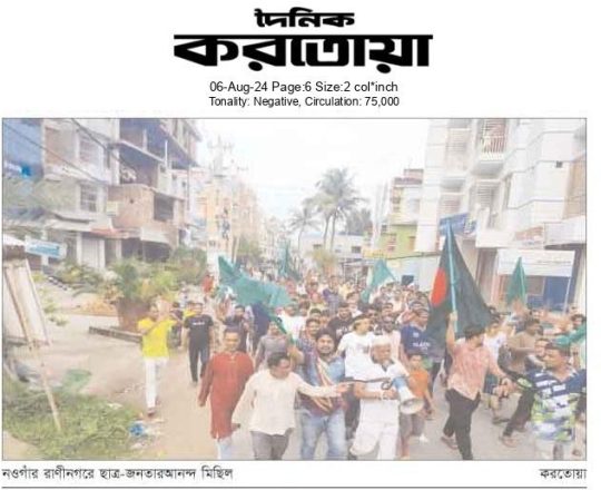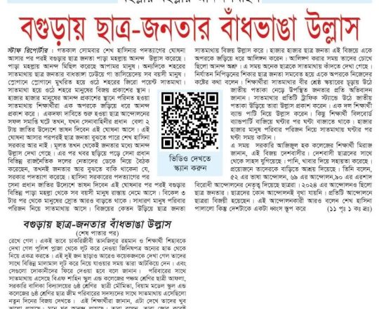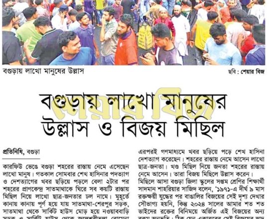 শেয়ার বিজ, ৬ আগস্ট ২০২৪, বগুড়ায় লাখো মানুষের উল্লাস ও বিজয় মিছিল