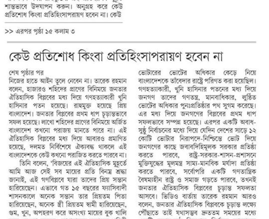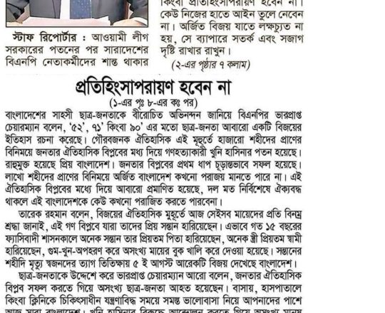 সময়ের আলো, ৬ আগস্ট ২০২৪, কেউ প্রতিশোধ পরায়ণ হবেন না -তারেক রহমান