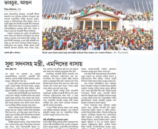সময়ের আলো, ৬ আগস্ট ২০২৪, চারপাশে হামলা অগ্নিসংযোগ গণভবনে গণলুট