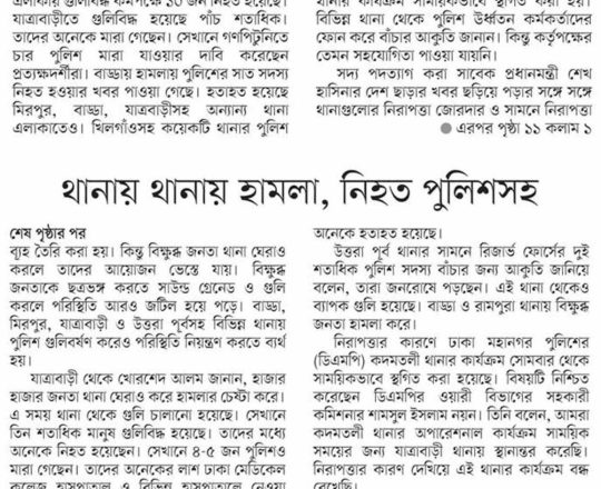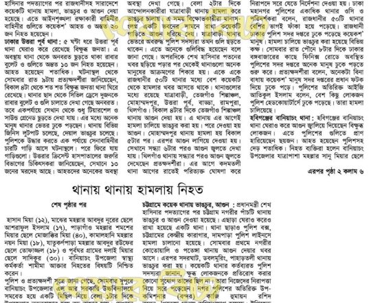 শেয়ার বিজ, ৬ আগস্ট ২০২৪, থানায় থানায় হামলায় নিহত ২০, কয়েকশ' আহত