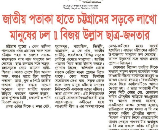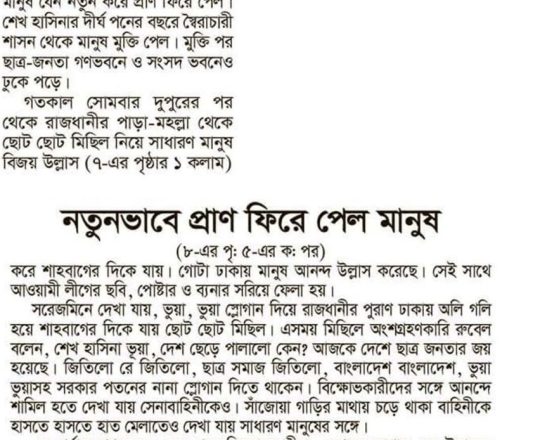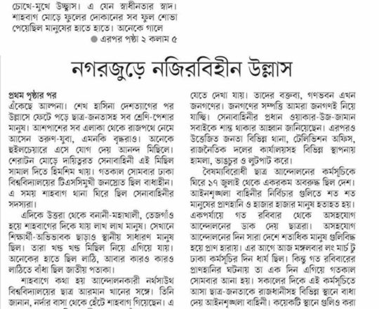 সংগ্রাম, ৬ আগস্ট ২০২৪, যেন নতুনভাবে প্রাণ ফিরে পেল মানুষ
