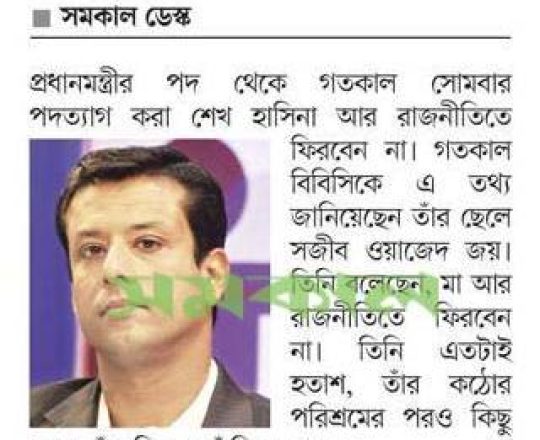 সময়ের আলো, ৬ আগস্ট ২০২৪, মা আর রাজনীতিতে ফিরছেন না- জয়