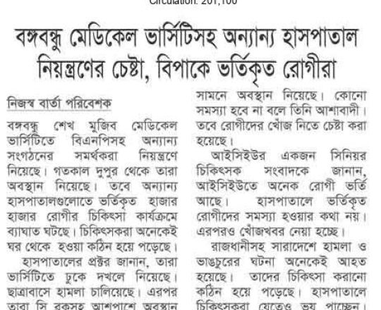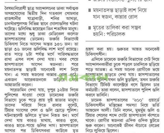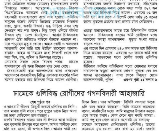 সময়ের আলো, ৬ আগস্ট ২০২৪, ঢামেকে গুলিবিদ্ধ রোগীদের গগনবিদারী আহাজারি