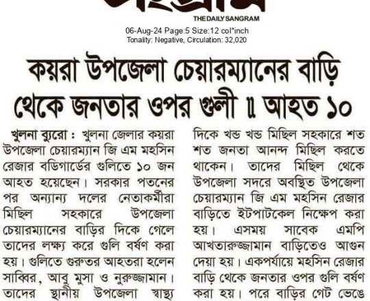 শেয়ার বিজ, ৬ আগস্ট ২০২৪, চেয়ারম্যানের বাড়ি থেকে জনতার ওপর গুলি