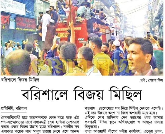 শেয়ার বিজ, ৬ আগস্ট ২০২৪, বরিশালে বিজয় মিছিল
