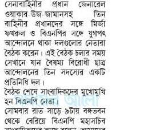 সময়ের আলো, ৬ আগস্ট ২০২৪, সেনা প্রধানের সঙ্গে রাজনৈতিক নেতৃবৃন্দের বৈঠক