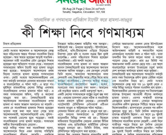 সময়ের আলো, ৬ আগস্ট ২০২৪, সাংবাদিক ও গণমাধ্যম প্রতিষ্ঠান টার্গেট করে হামলা-ভাঙচুর কী শিক্ষা নিবে গণমাধ্যম