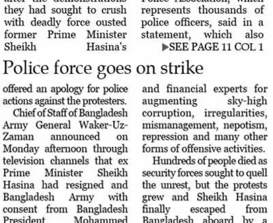 Asian Age, 7 August 2024, Police force goes on strike