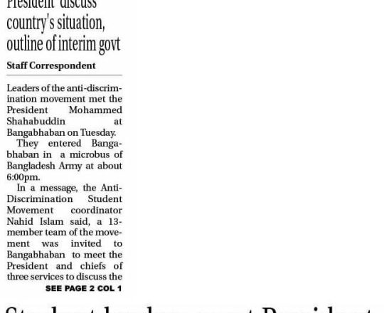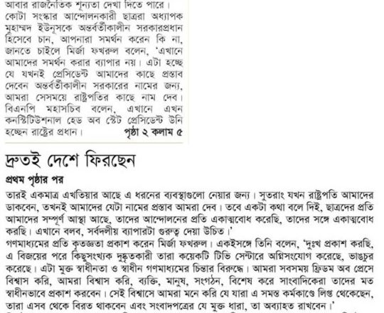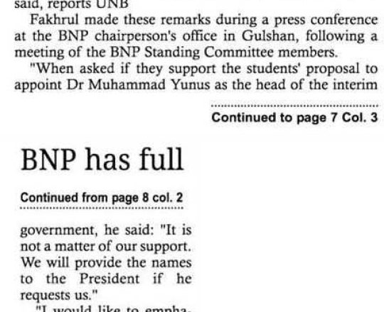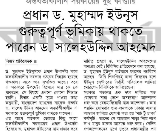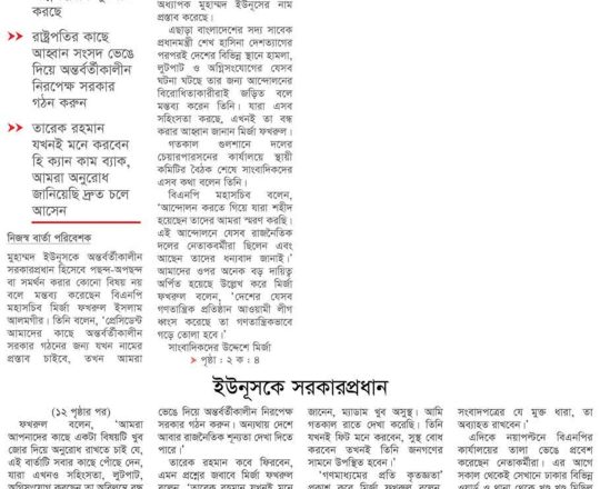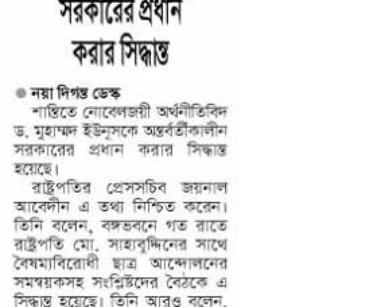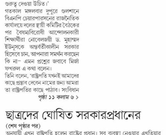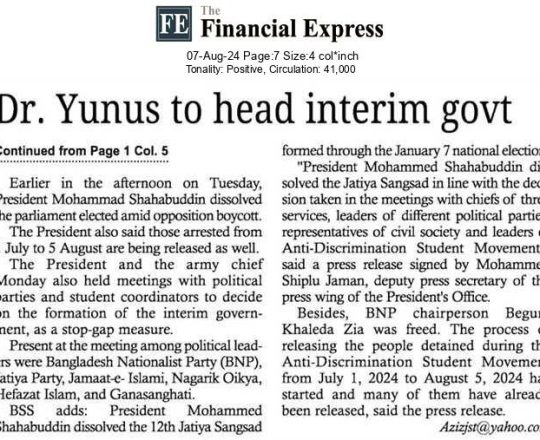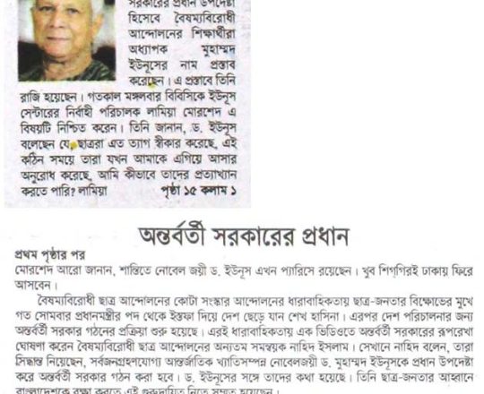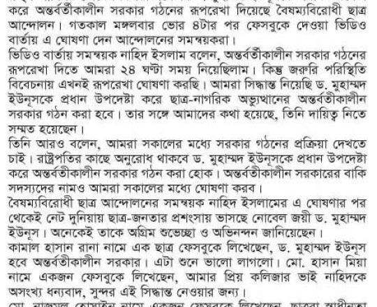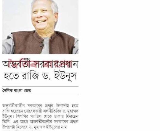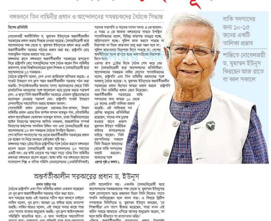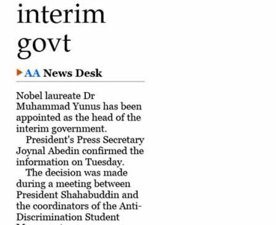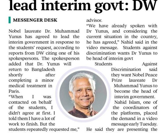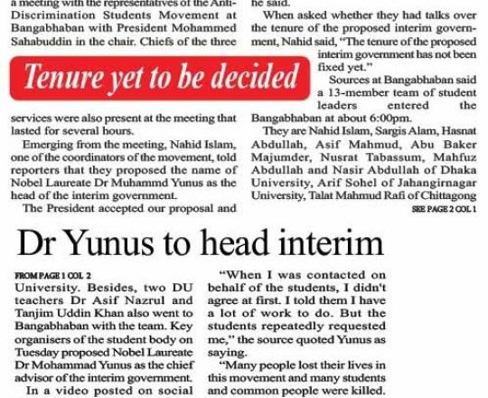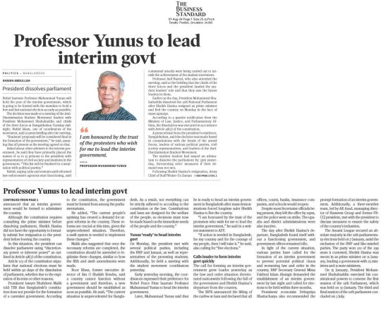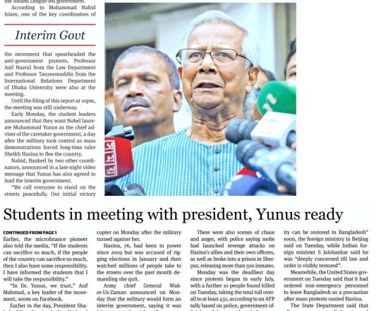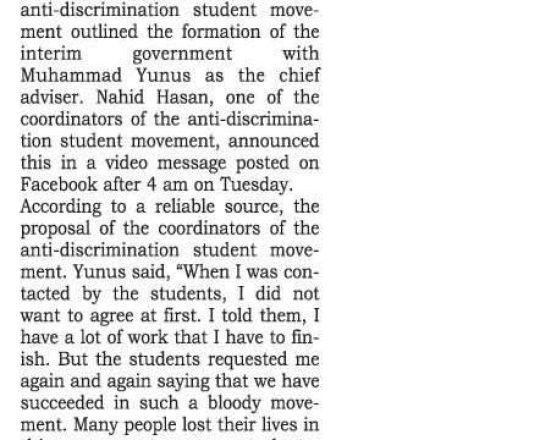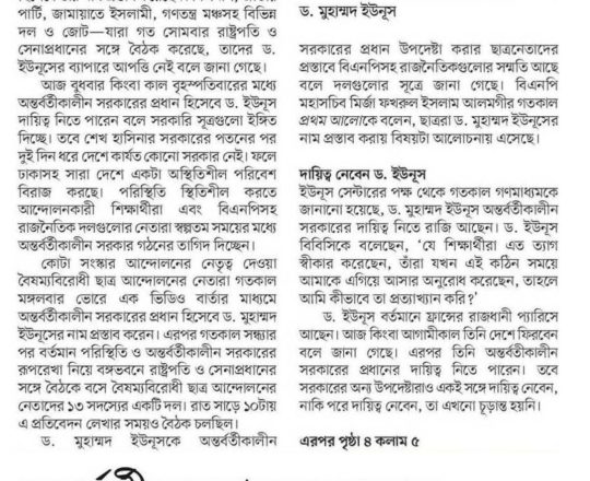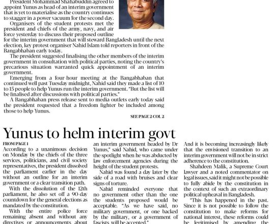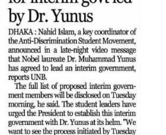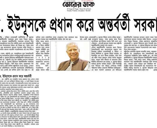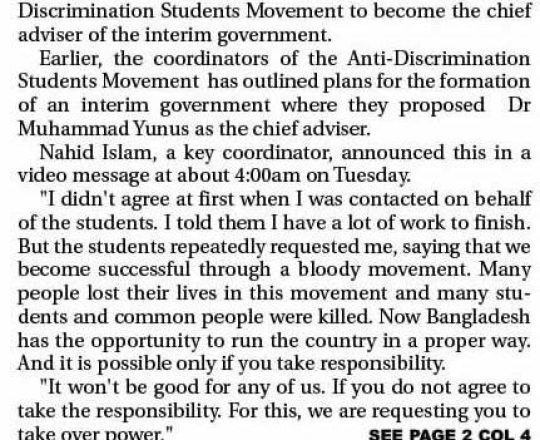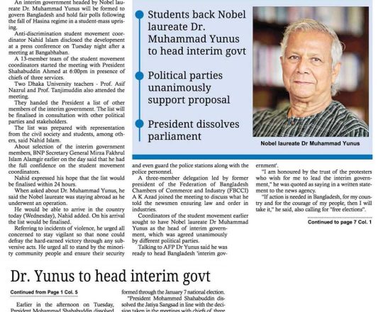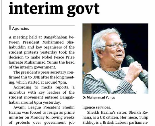 Bangladesh Post, 7 August 2024, Dr Yunus to head interim govt