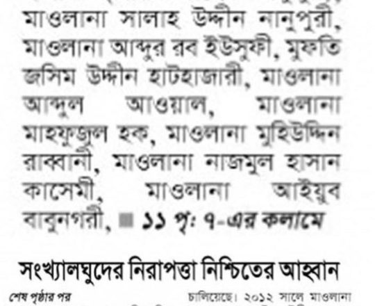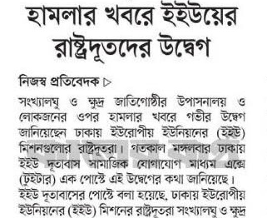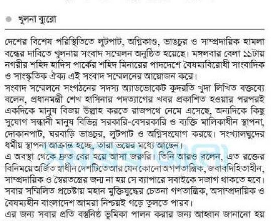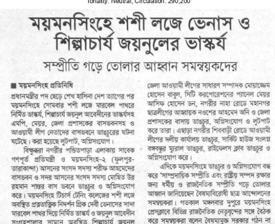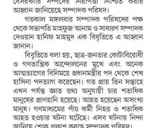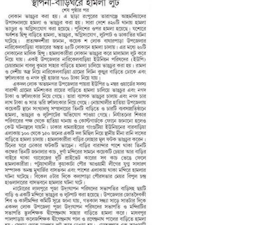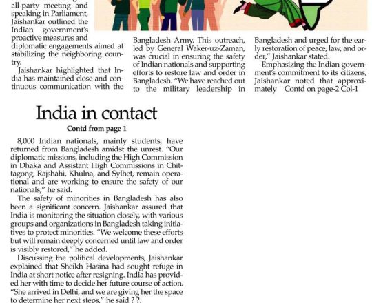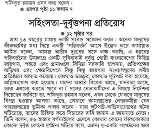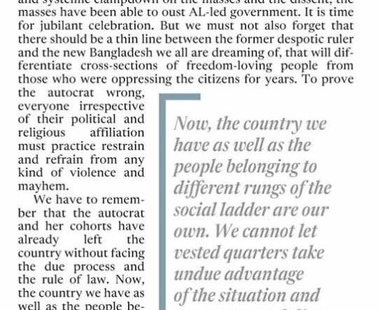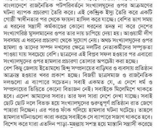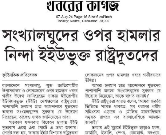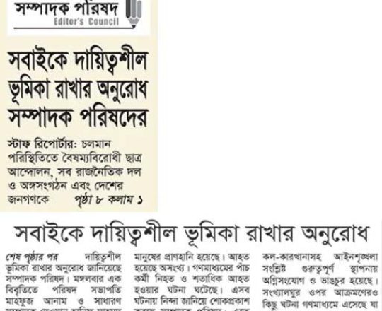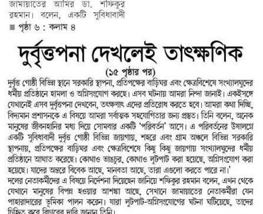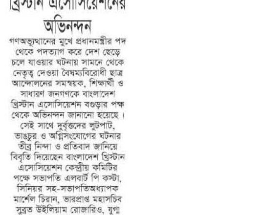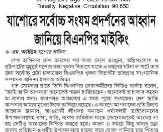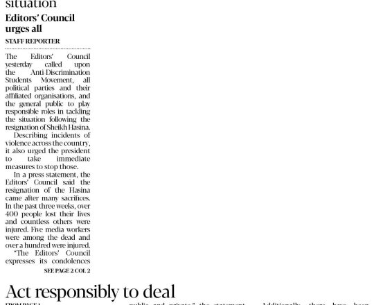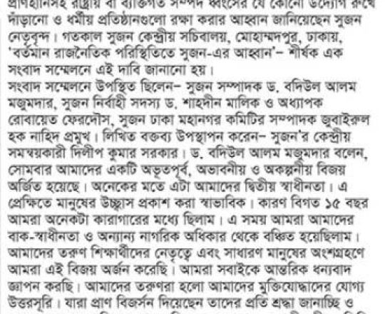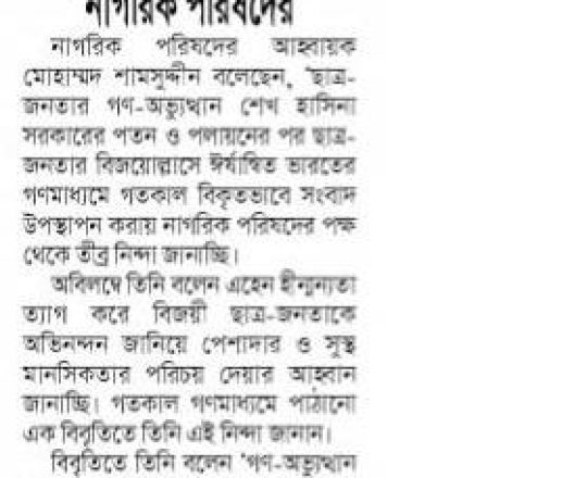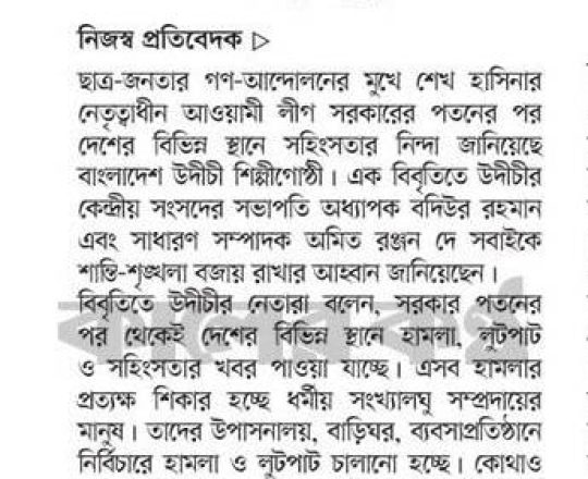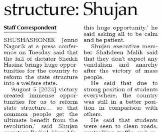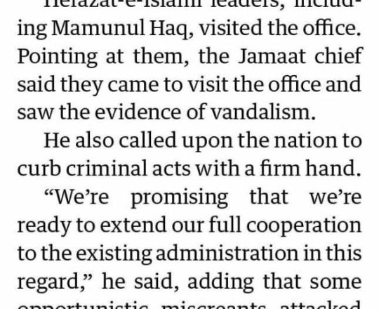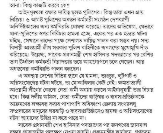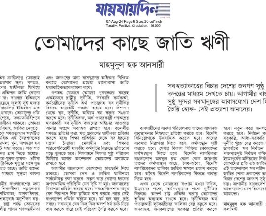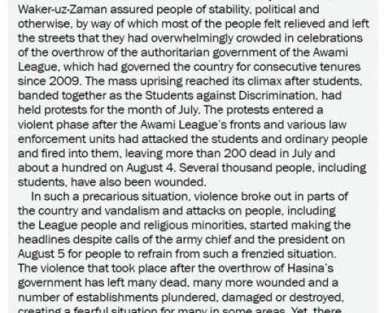 Asian Age, 7 August 2024, TIB calls for effective action to protect minorities and state property
