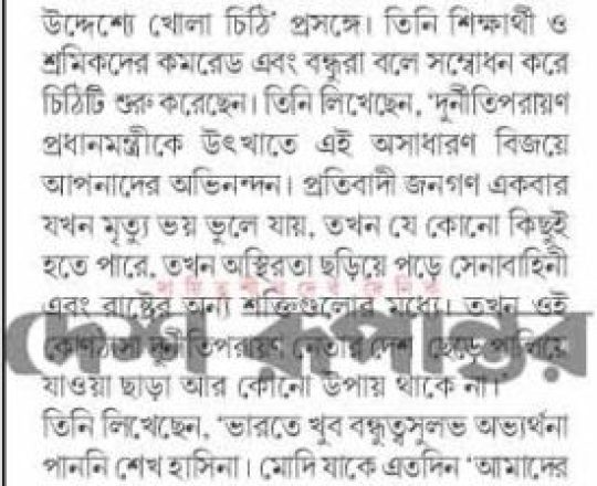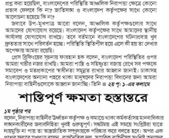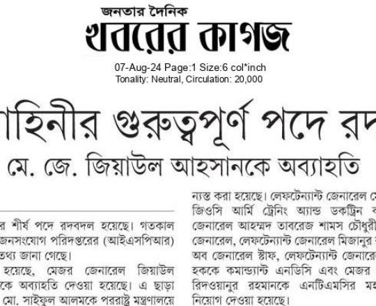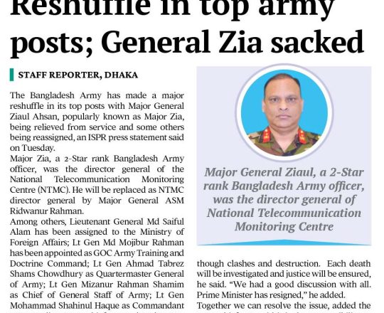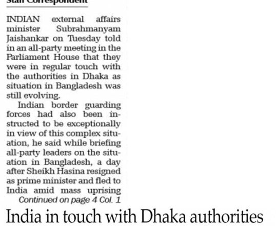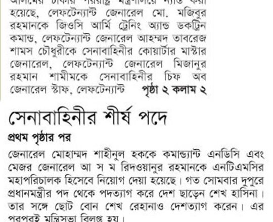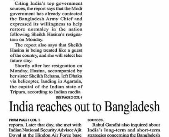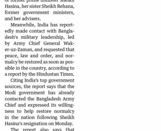 Bangladesh Post, 7 August 2024, India reaches out to Bangladesh Army Chief